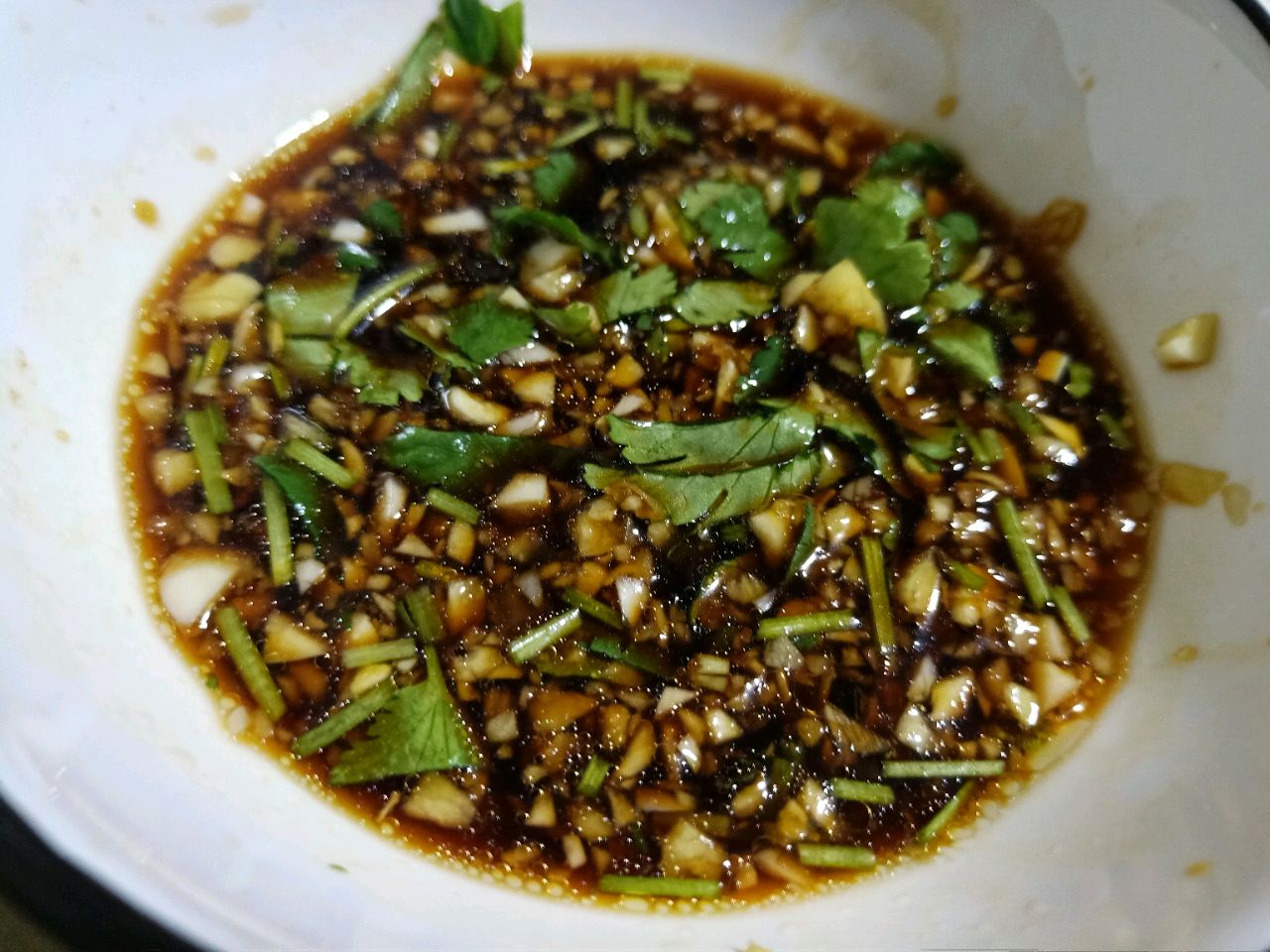 步骤3、用蒜沫姜沫喝香菜调个蘸料