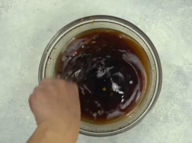 步骤2、找一个大碗,倒入1大勺蒜末、1杯生抽、3勺芝麻油、半勺盐和3勺胡椒粉,搅拌均匀后静置15分钟。(如果您家里有红胡椒,可以将其碾碎成片状,放3勺即可)