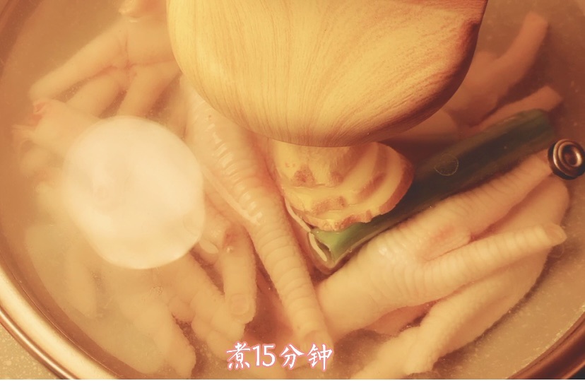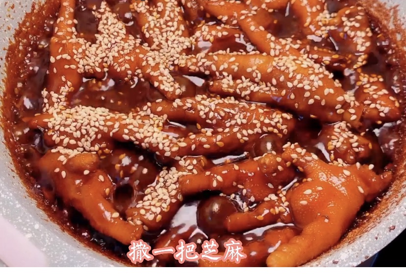 步骤7、下焯好的鸡爪,倒入灵魂酱汁。