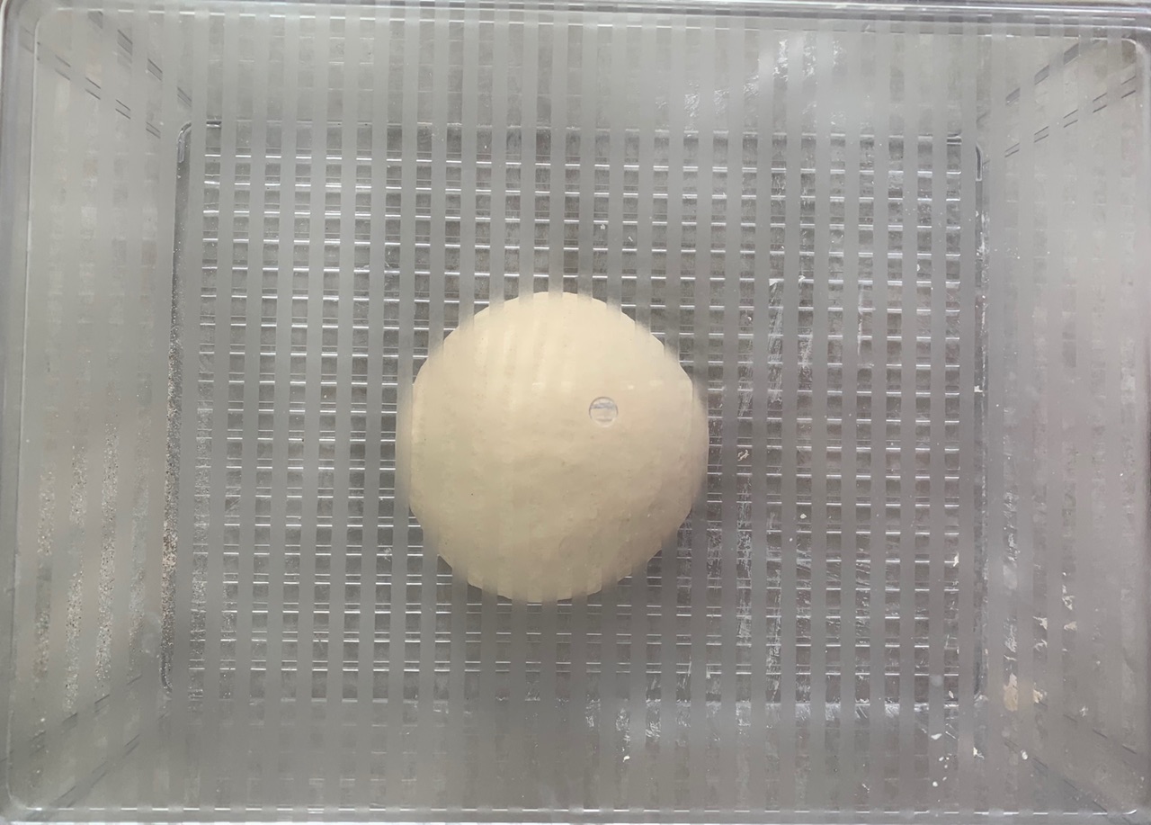 步骤2、放温暖的地方发酵到用手指扎面团,面团不塌陷,小洞不回缩。