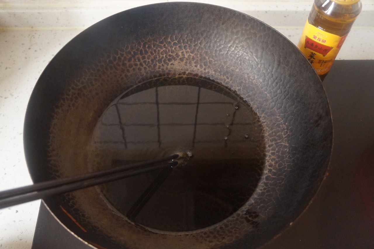 步骤7、热锅倒入宽油,烧到六成热,筷子放下去有小泡泡就可以了