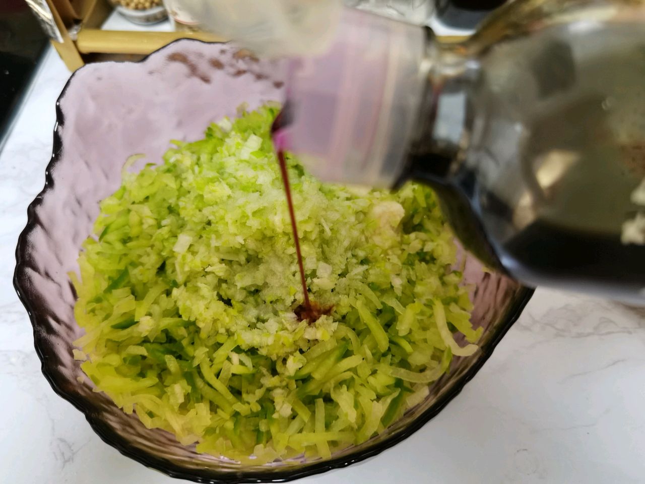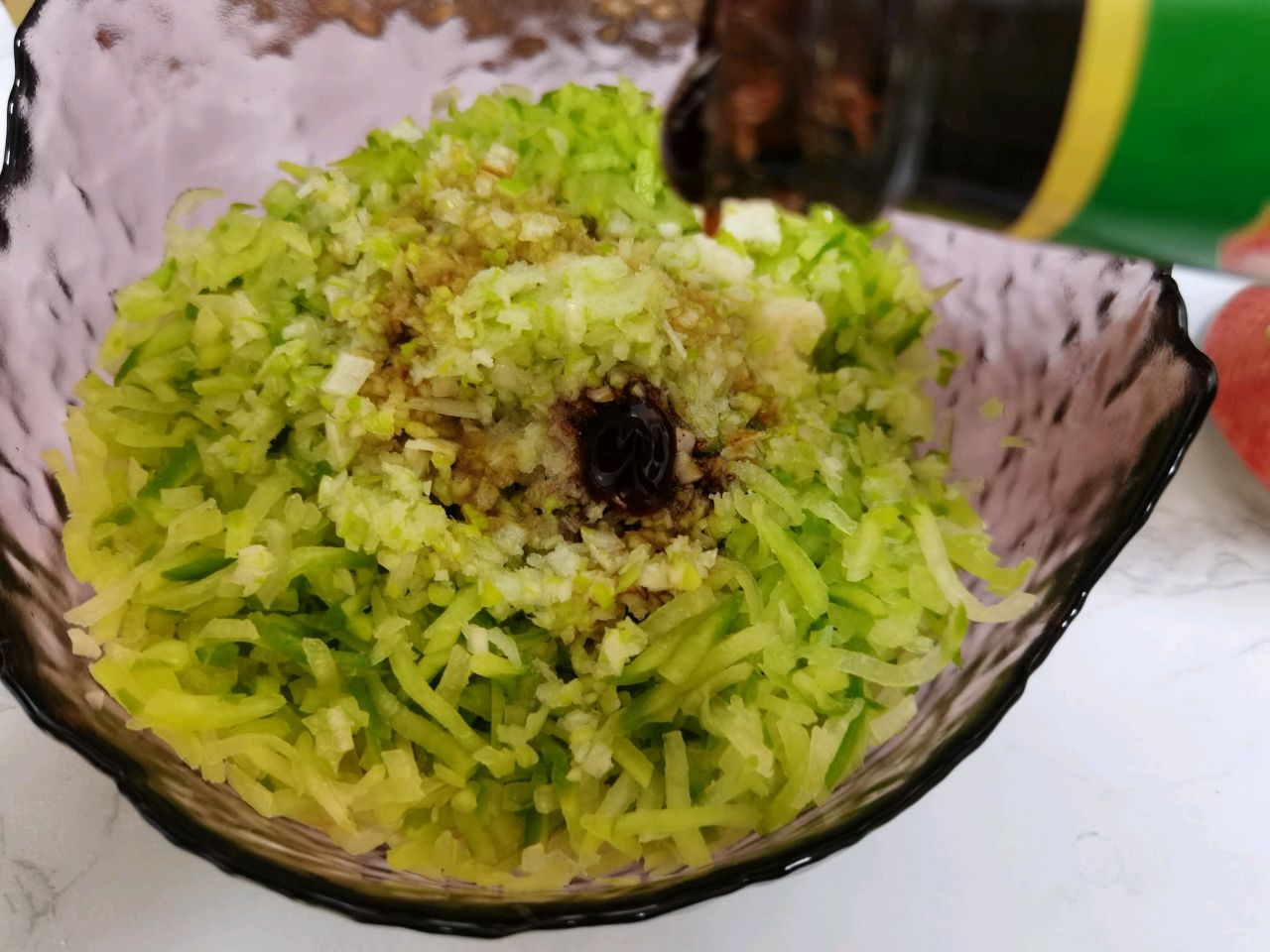 步骤1、萝卜擦丝撒入白糖搅拌均匀