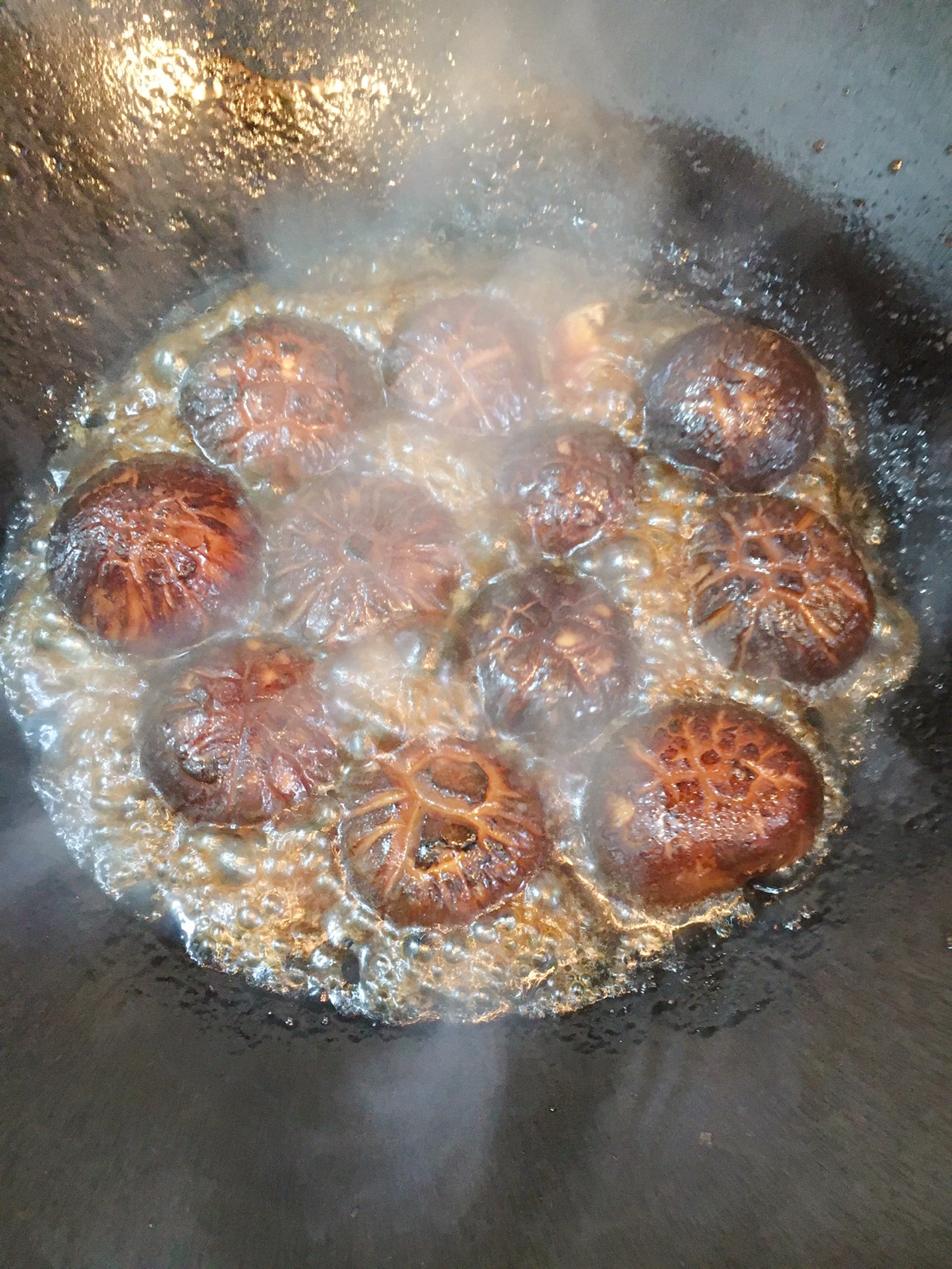 步骤6、热锅放油,加入沥干水的鲜蘑菇爆炒透