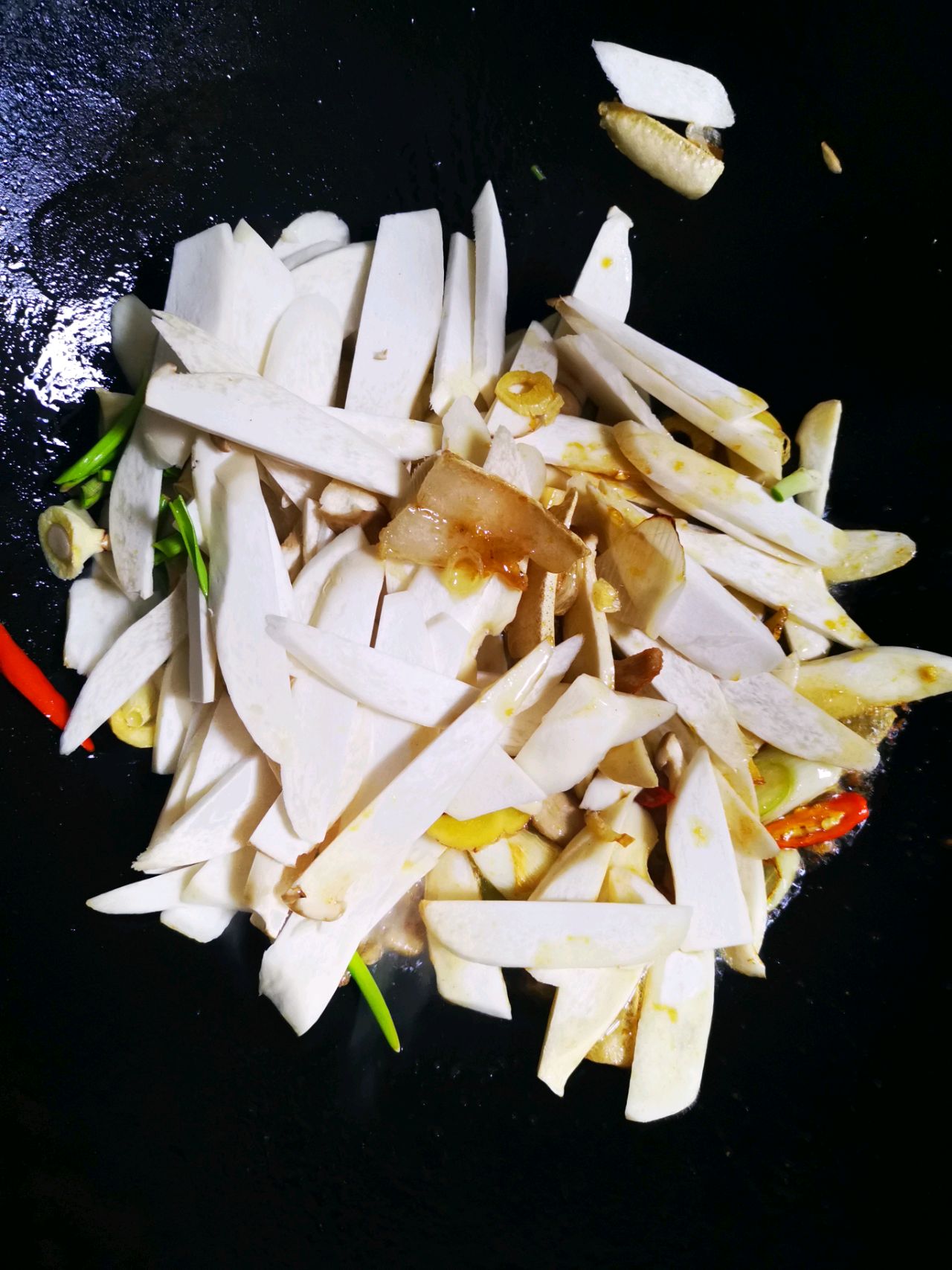 步骤5、直到杏鲍菇炒熟后加入胡椒粉和盐就行
