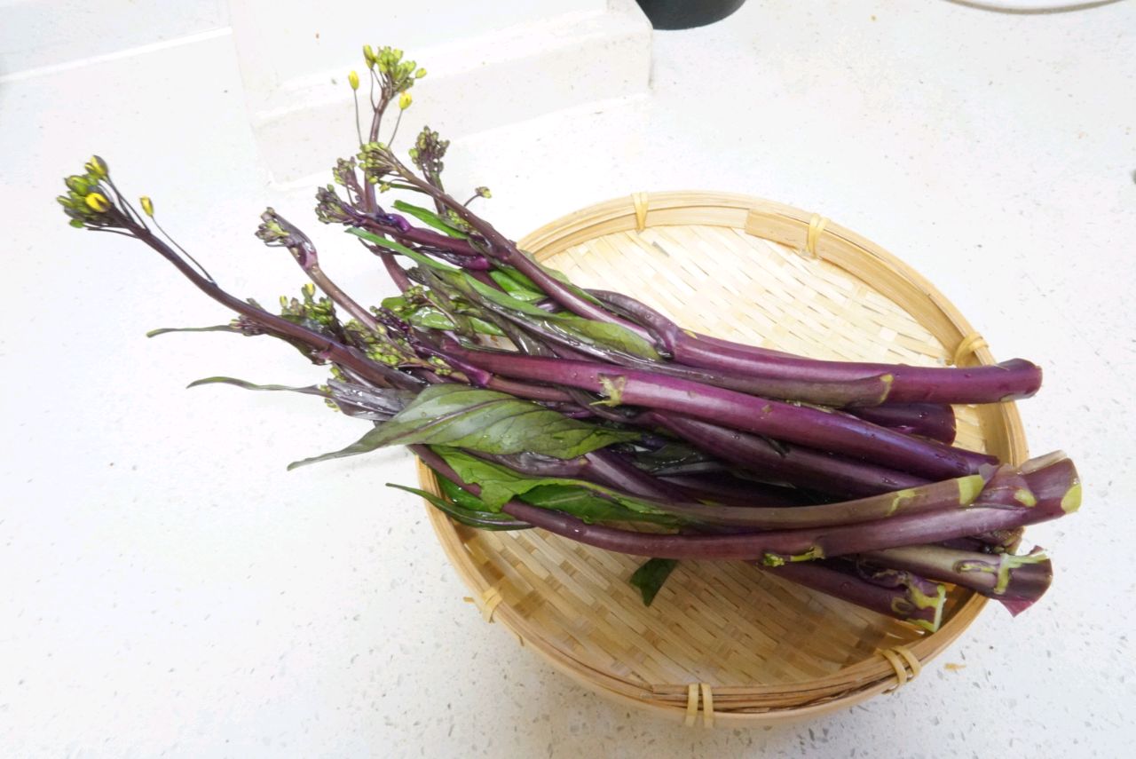 步骤1、正是当季的红菜苔,鲜嫩的能掐出水来