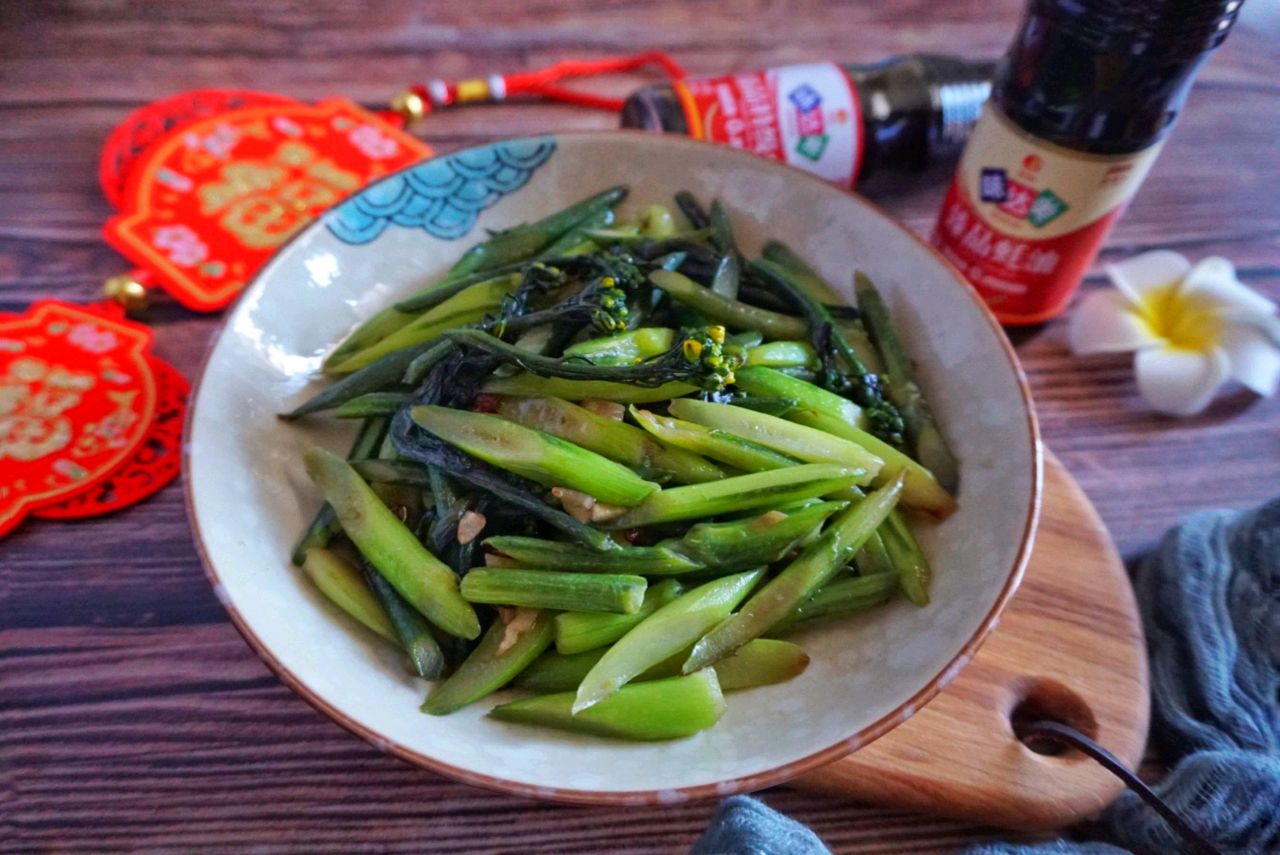 菜苔分红菜苔和绿菜苔,吃法差不多,红菜苔根部外皮和花蕾部分略苦,需要撕掉老皮,苦味几乎就尝不到了。 年夜饭从来不缺大鱼大肉,上一盘清鲜甜脆的红菜苔,一下子如清水出芙蓉,吸引了大家的筷子头。