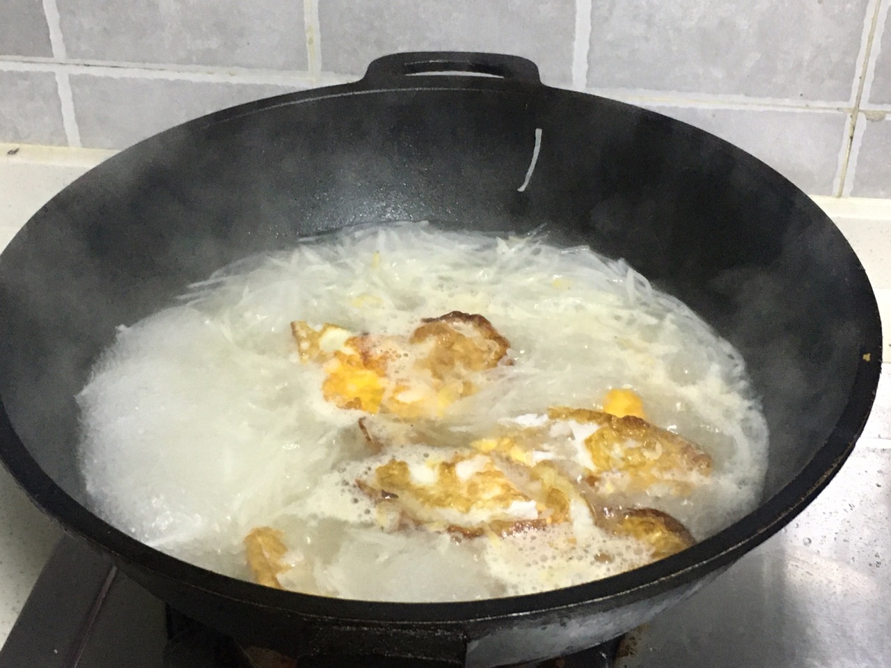 步骤5、加入一碗“开水”,完全没过食材,再加入煎好的鸡蛋,大火煮沸,煮沸后加上盖子中小火焖煮10分钟左右,且一直保持沸腾状态;
