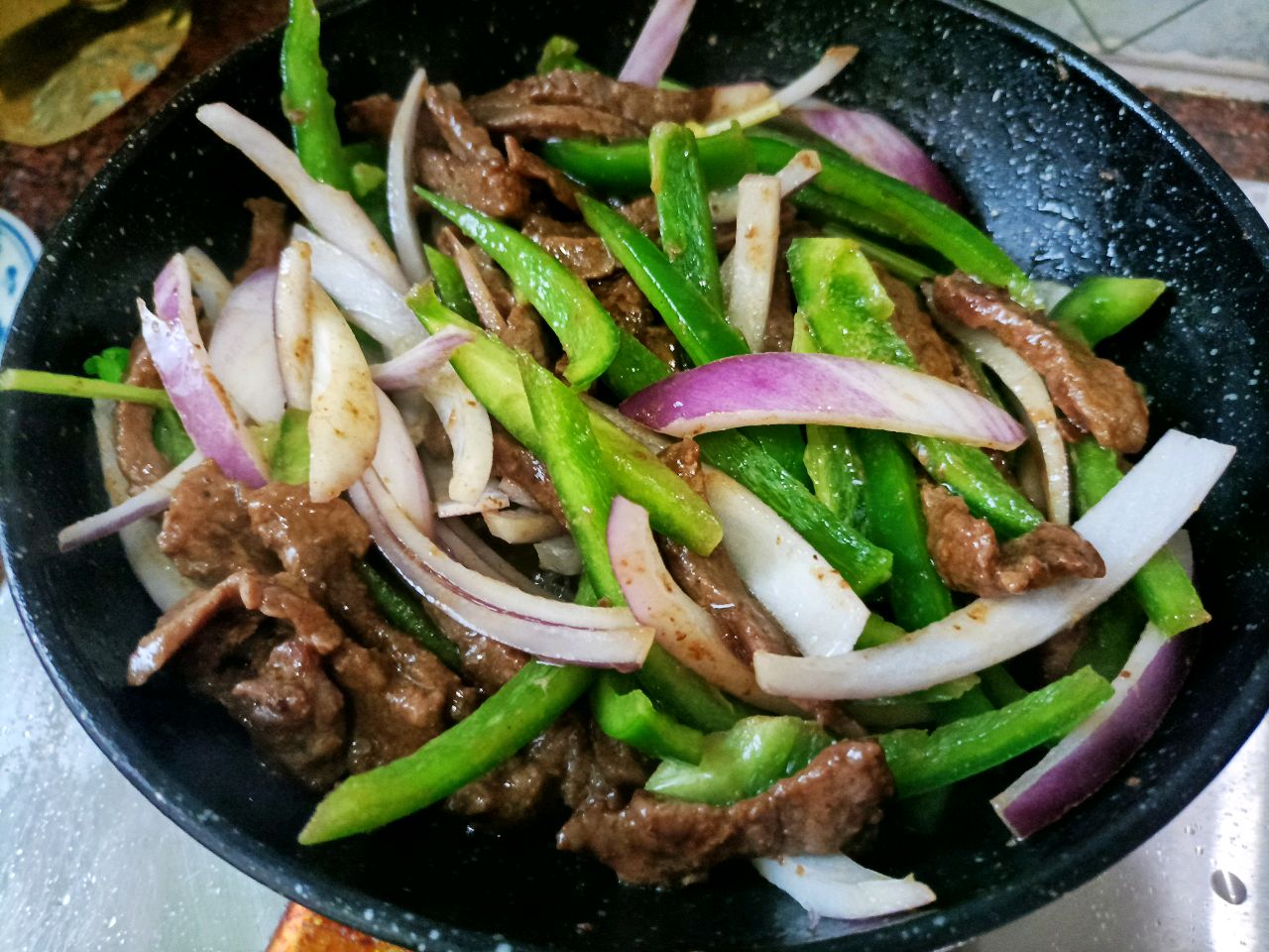 辅料:黑胡椒适量、青椒适量、料酒适量、盐适量、淀粉适量、生抽适量、耗油适量、油适量