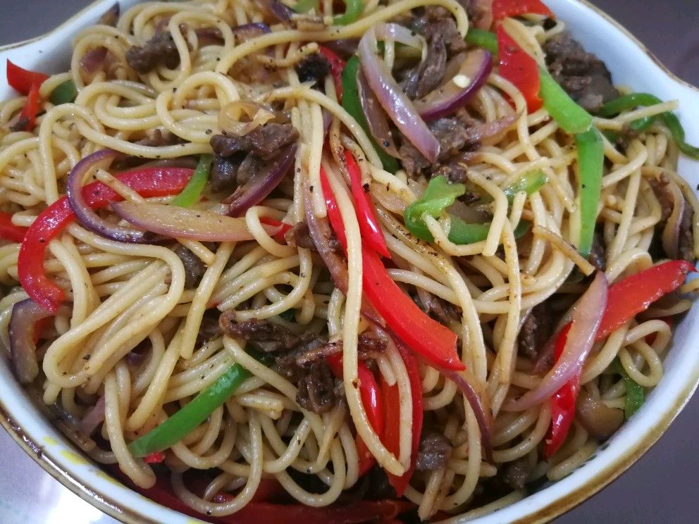 辅料:洋葱适量、青红椒1个、生抽1勺、盐适量、料酒1勺、淀粉1勺、黑胡椒粉1勺