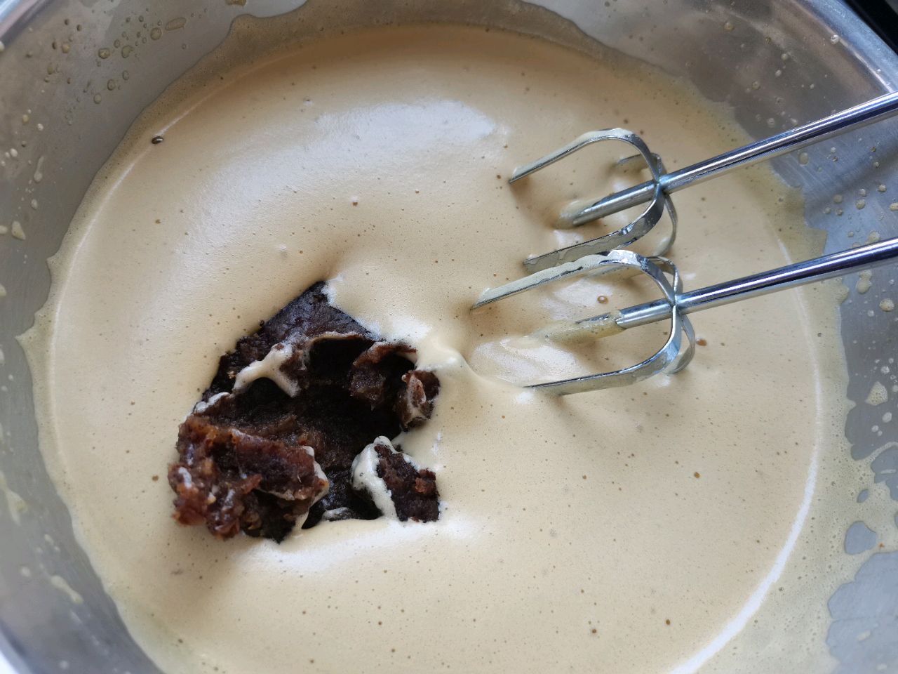 步骤5、加入红枣泥,用打蛋器将枣泥混合均匀。