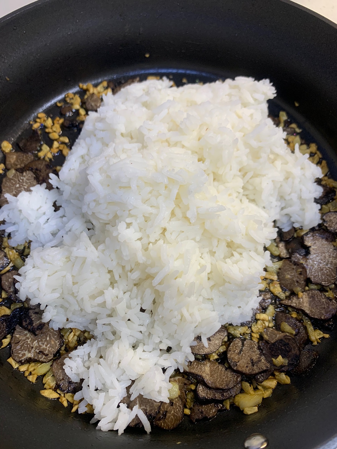 步骤13、偷偷告诉你们,我在这时已经把火关了,因为黑松露已经炒差不多了,米饭也是热的,不需要一直开着火