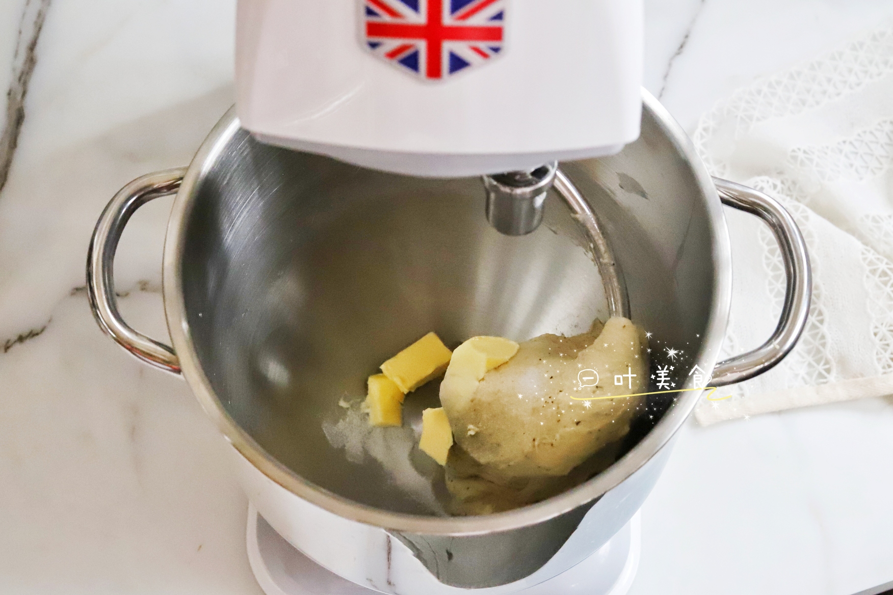 步骤2、黄油、盐以外的全部食材放入打面桶里。