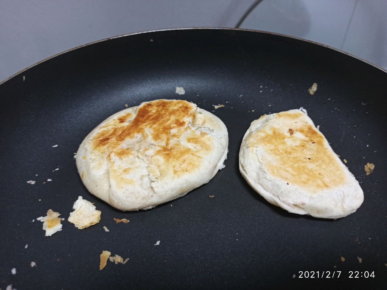 步骤7、【煎锅版红豆酥】❗饼要压扁一点不然中间部分不容易熟