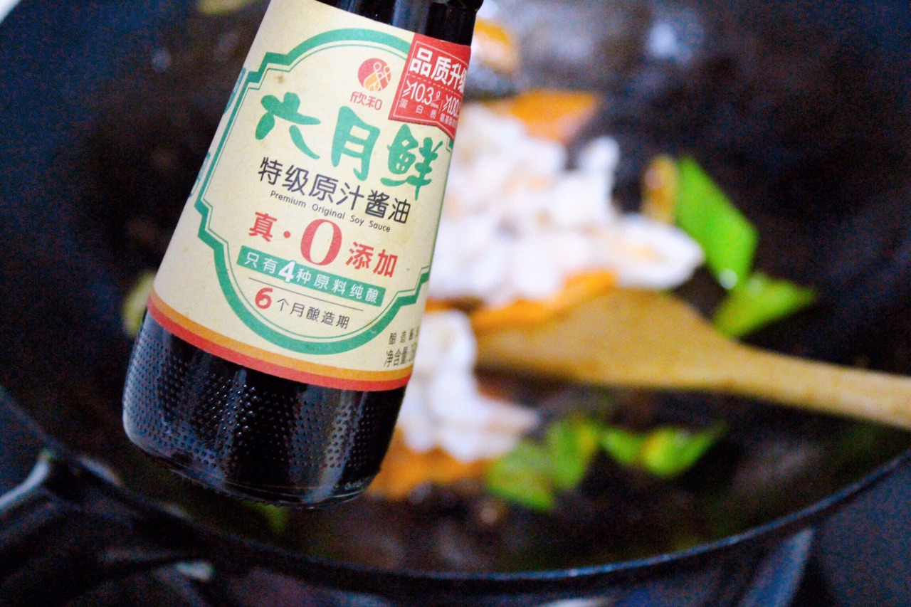 步骤11、放入生抽1勺,盐2克,糖2克翻炒均匀;