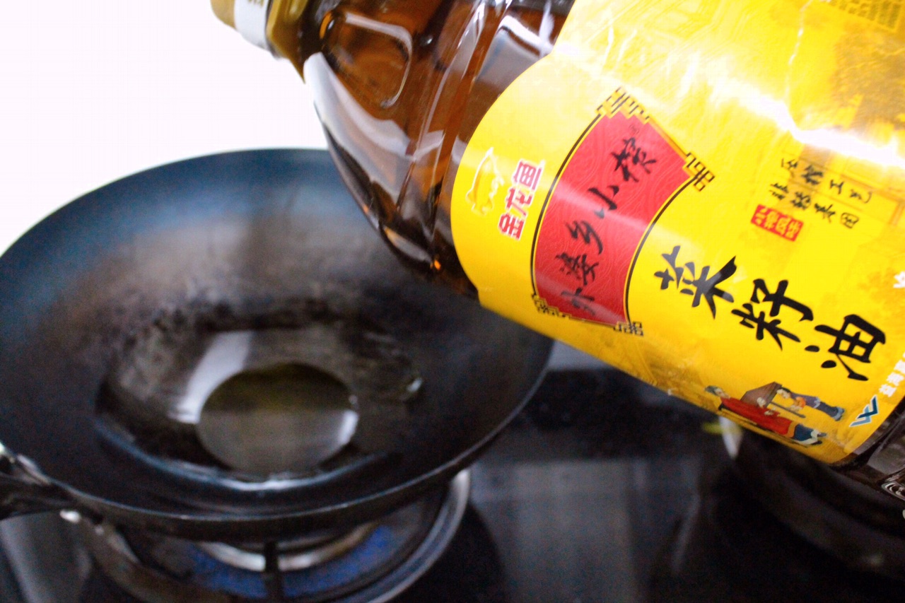 步骤7、锅中倒入金龙鱼外婆乡小榨菜籽油20克中火加热;