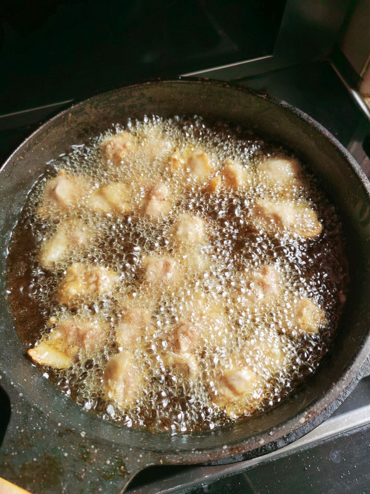 步骤10、鸡肉炸定型后捞出来,等油温升高再复炸一次