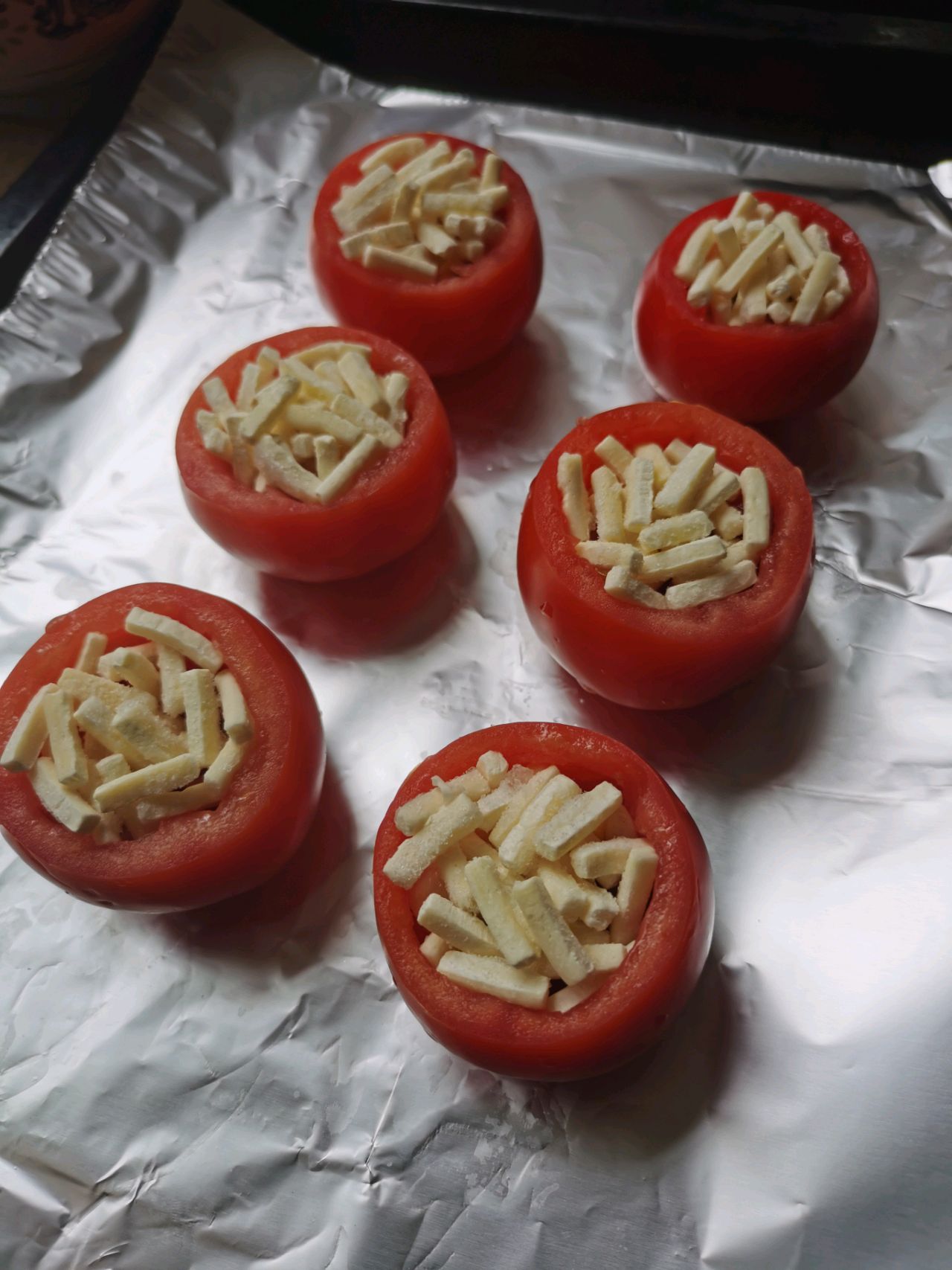 芝士焗西红柿,大鱼大肉吃多了,来点蔬菜解腻