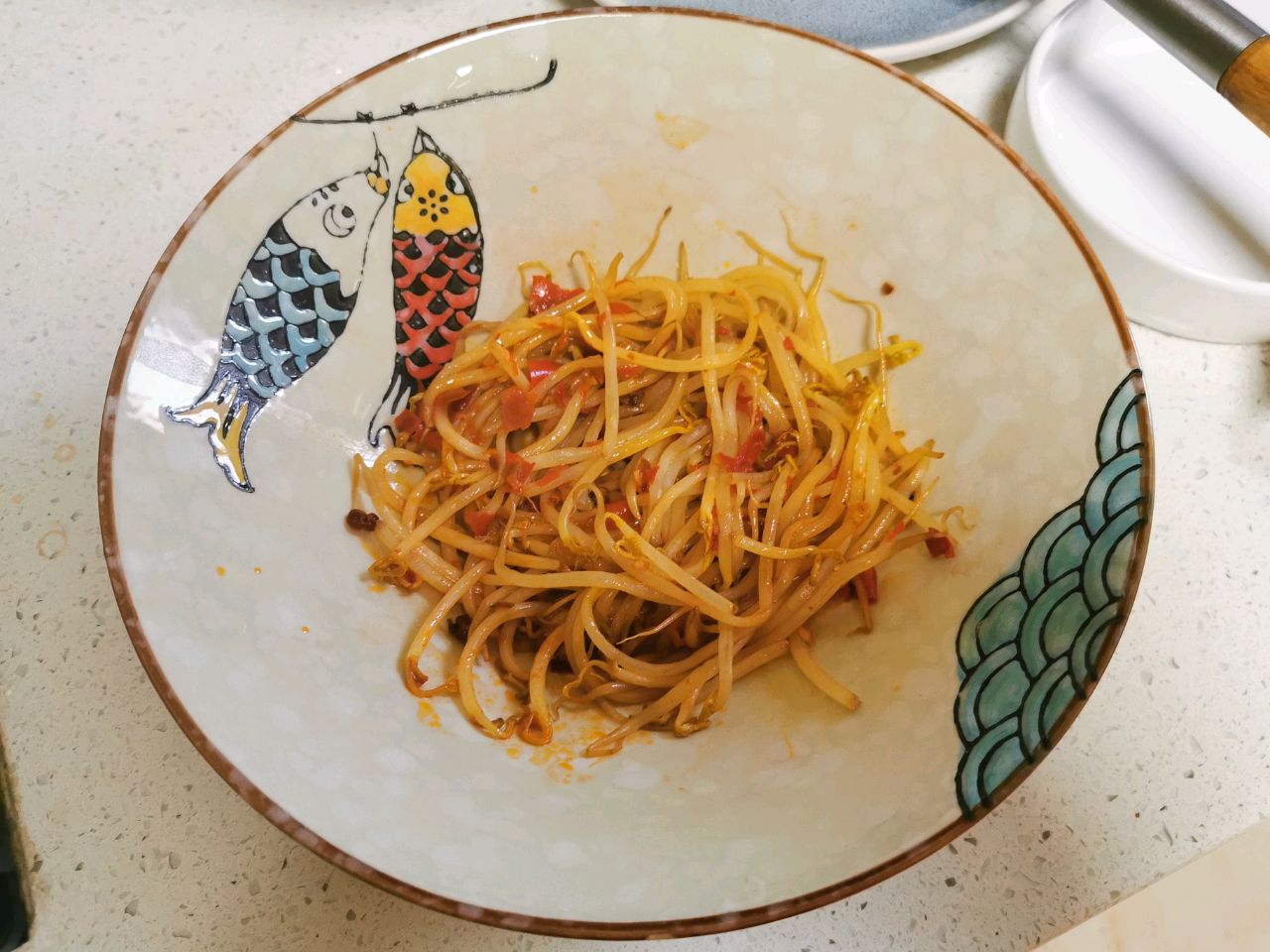 步骤16、放豆芽烫熟后捞出来