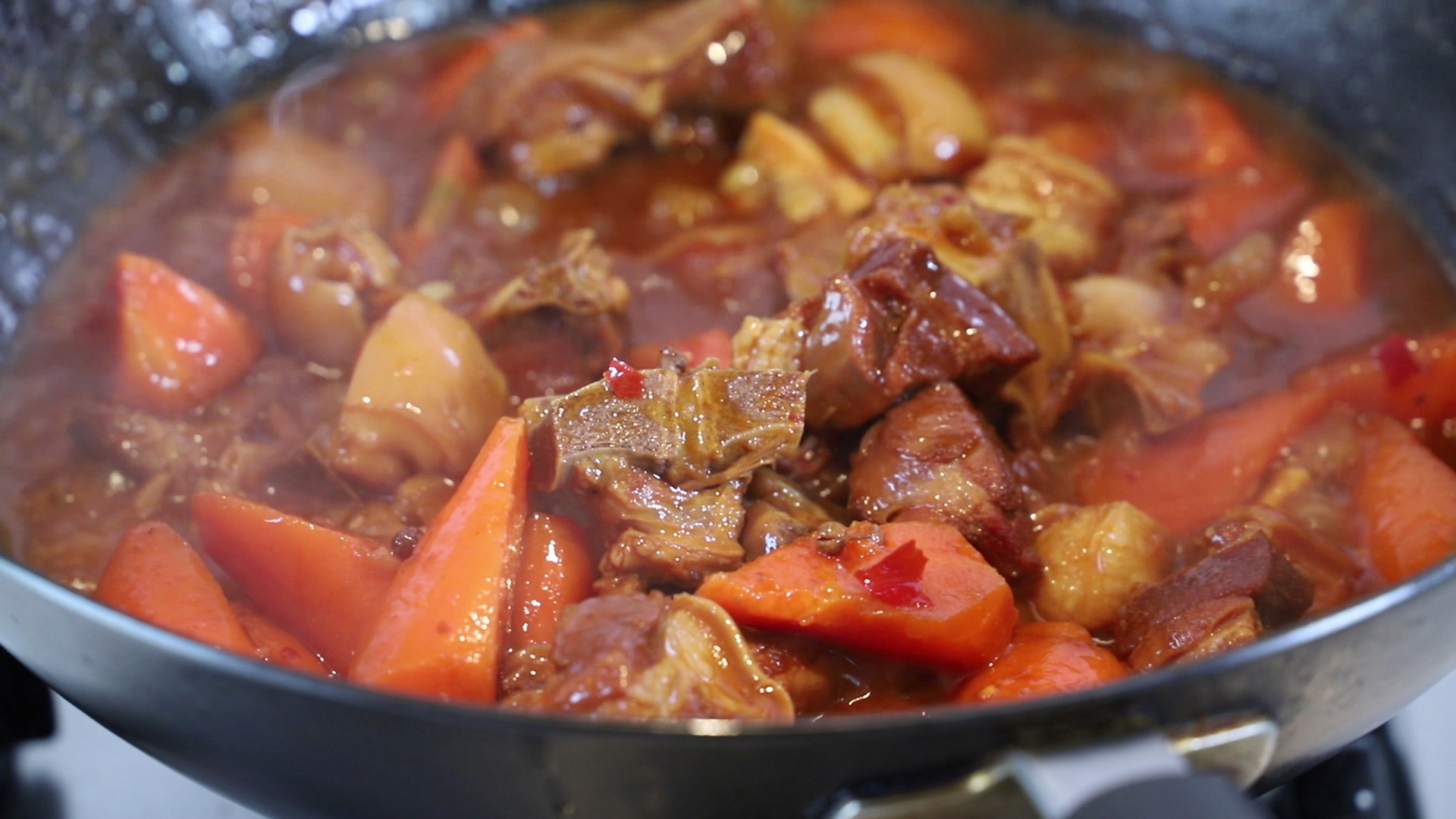 辅料:料酒20ml、胡萝卜2根、桂皮1块、花椒2g、草果1个、白芷2片、白寇5g、郫县豆瓣酱1勺、白糖1勺、胡椒粉2g