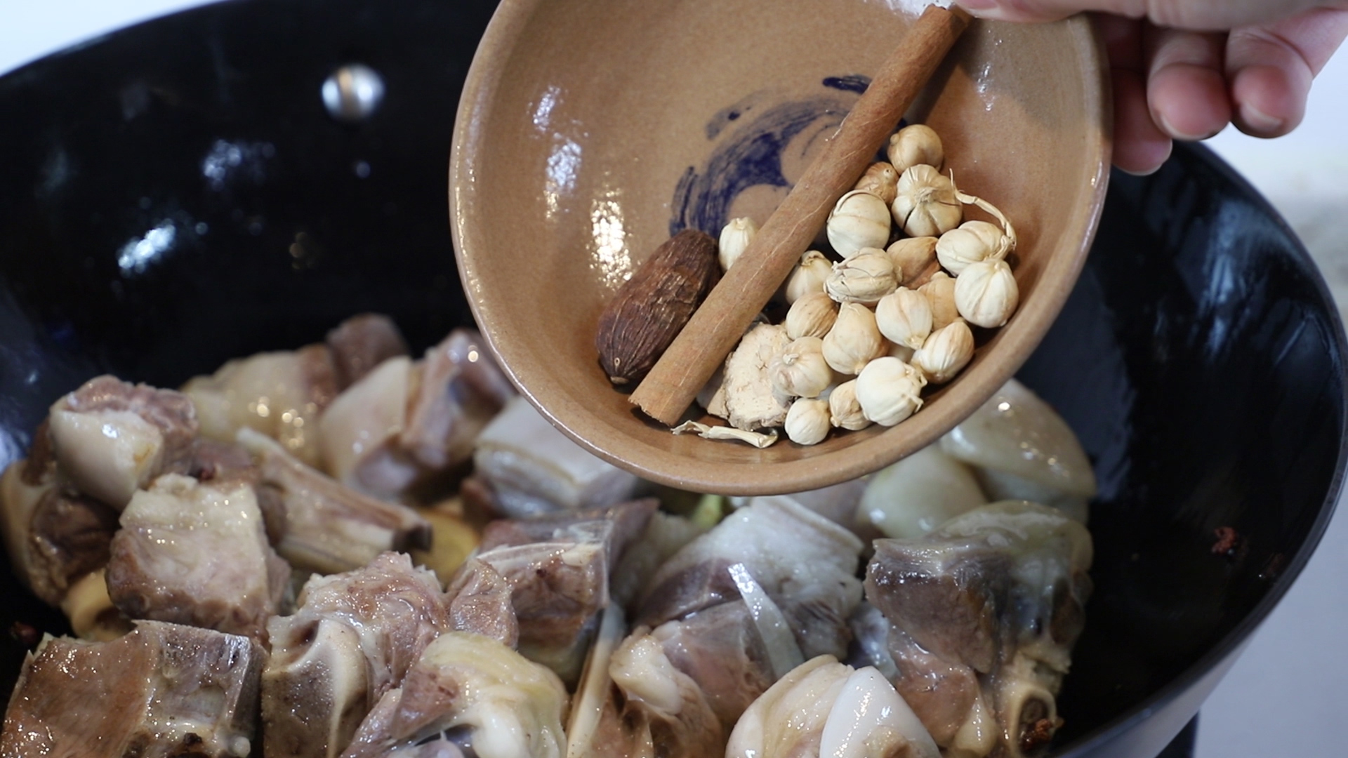 步骤12、时间到转入铁锅中,挑出香料,葱姜