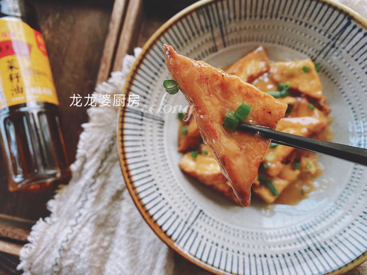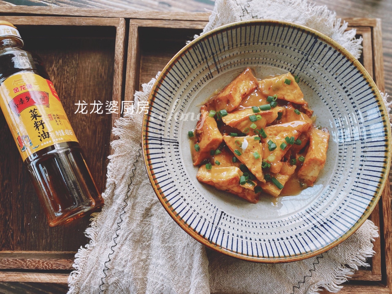 步骤2、豆腐切成三角形用吸油纸吸掉水分