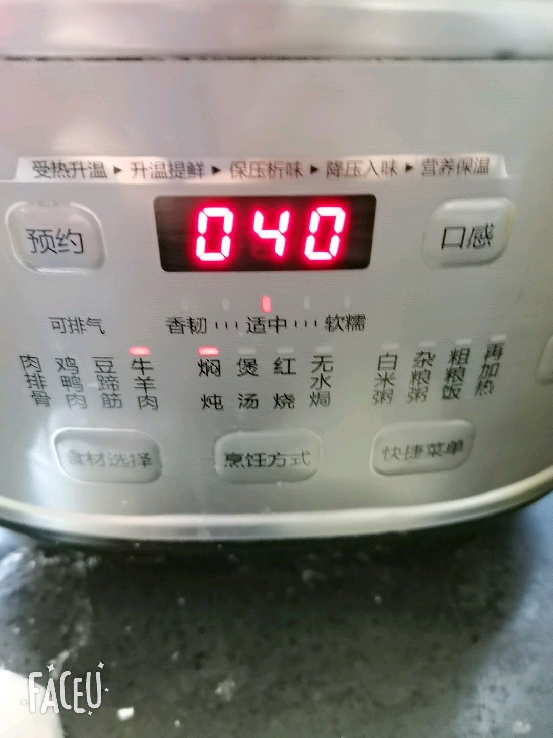 步骤11、放入电压力锅选择牛羊肉,焖炖键开始炖!