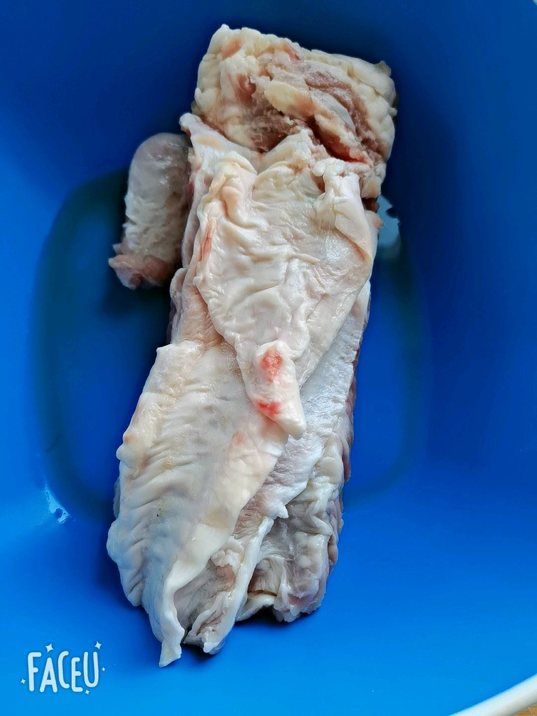 步骤2、这个就是泡了一夜的牛肉,已经泡的很白了!
