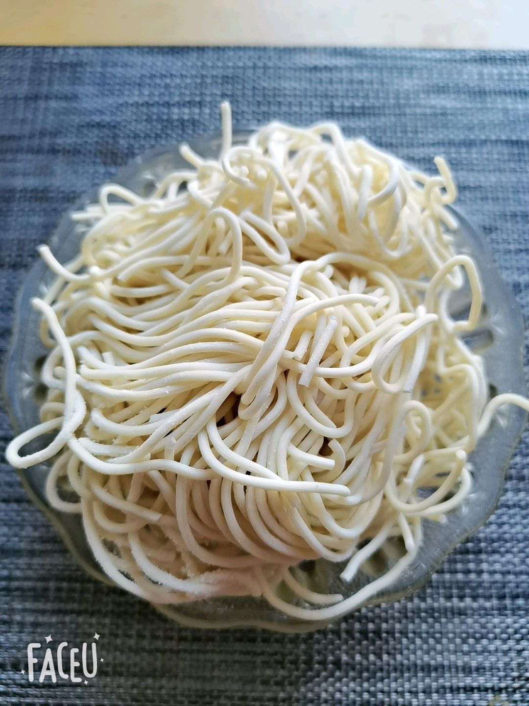 步骤1、先准备好1份干面条,我用的是面条铺里卖的那种圆面条!