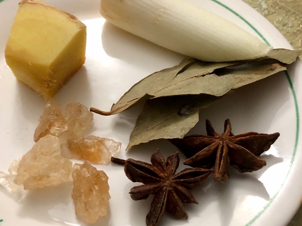 辅料:姜1块、生抽3勺、老抽1勺、大葱1根、八角2个、香叶2片、食用油少许、盐少许