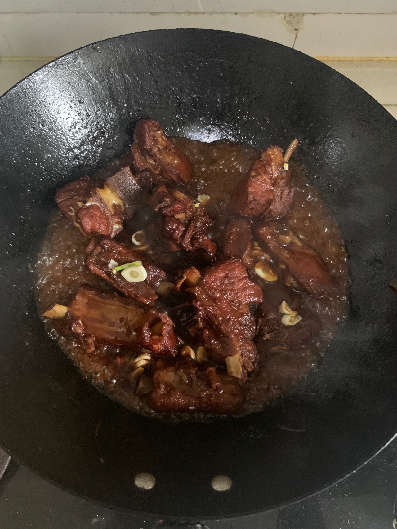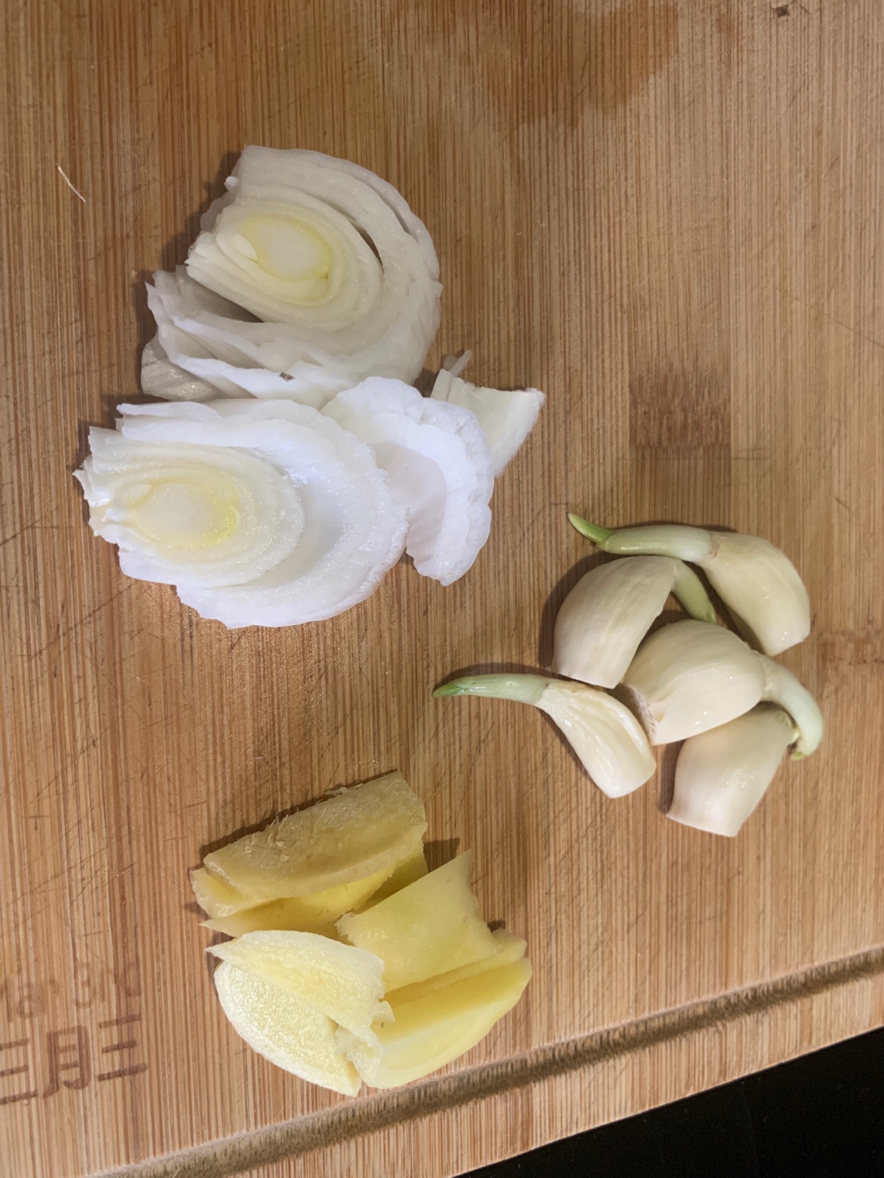 辅料:葱末茶匙、姜丝适量、盐适量、料酒1勺、老抽2勺、冰糖一小把、花椒适量、八角1个、香菜1根、山楂可选、香叶可选、陈皮可选、桂皮可选、白芷可选、韭黄/小葱可选