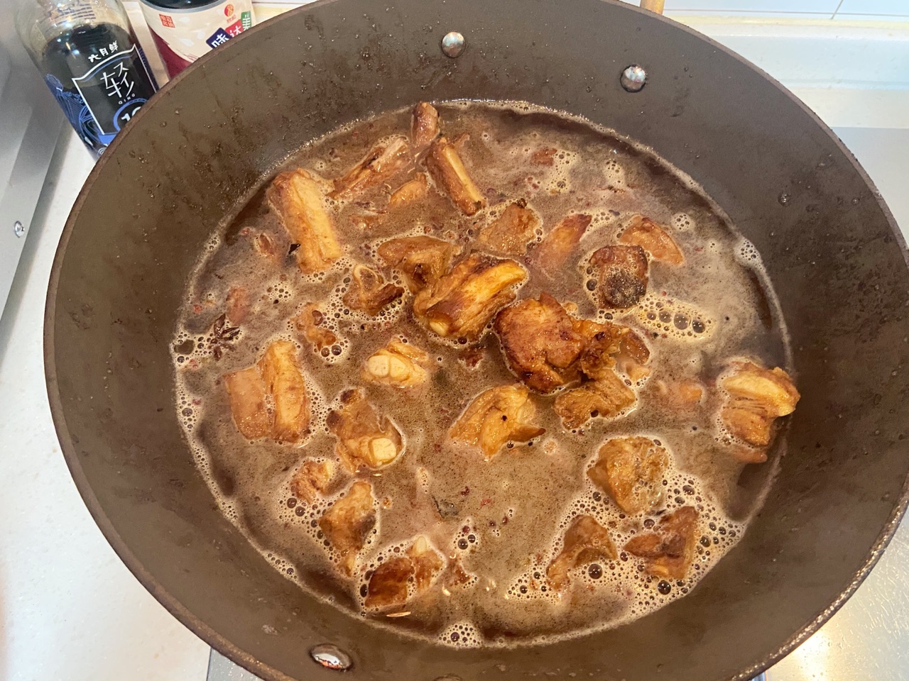 步骤6、加开水大火炖十分钟左右、小火继续慢炖至汤汁收干(一定要加开水没过排骨)