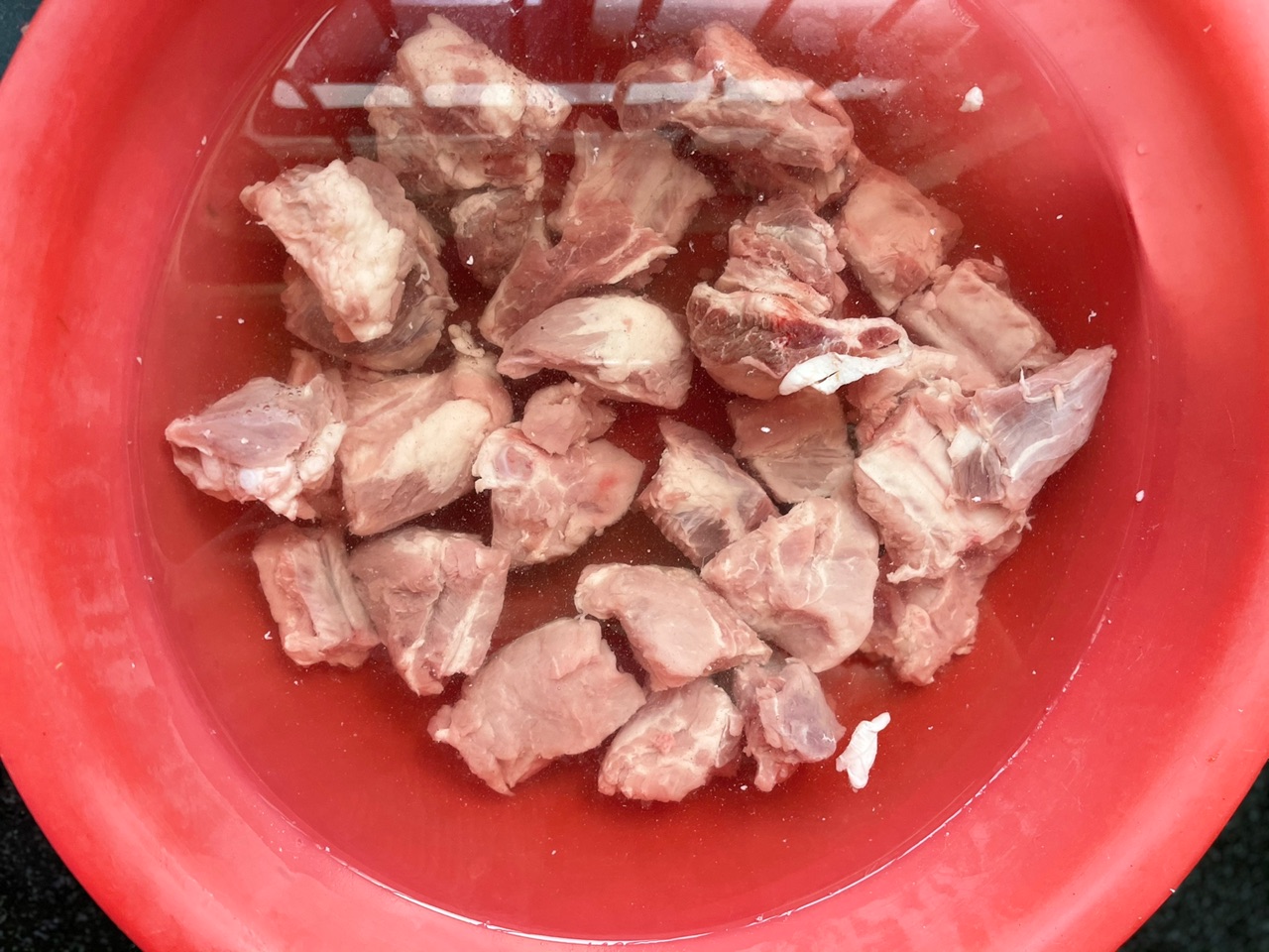 步骤1、冷冻室拿出一份排骨,泡水2小时左右(化冻,去血水)。