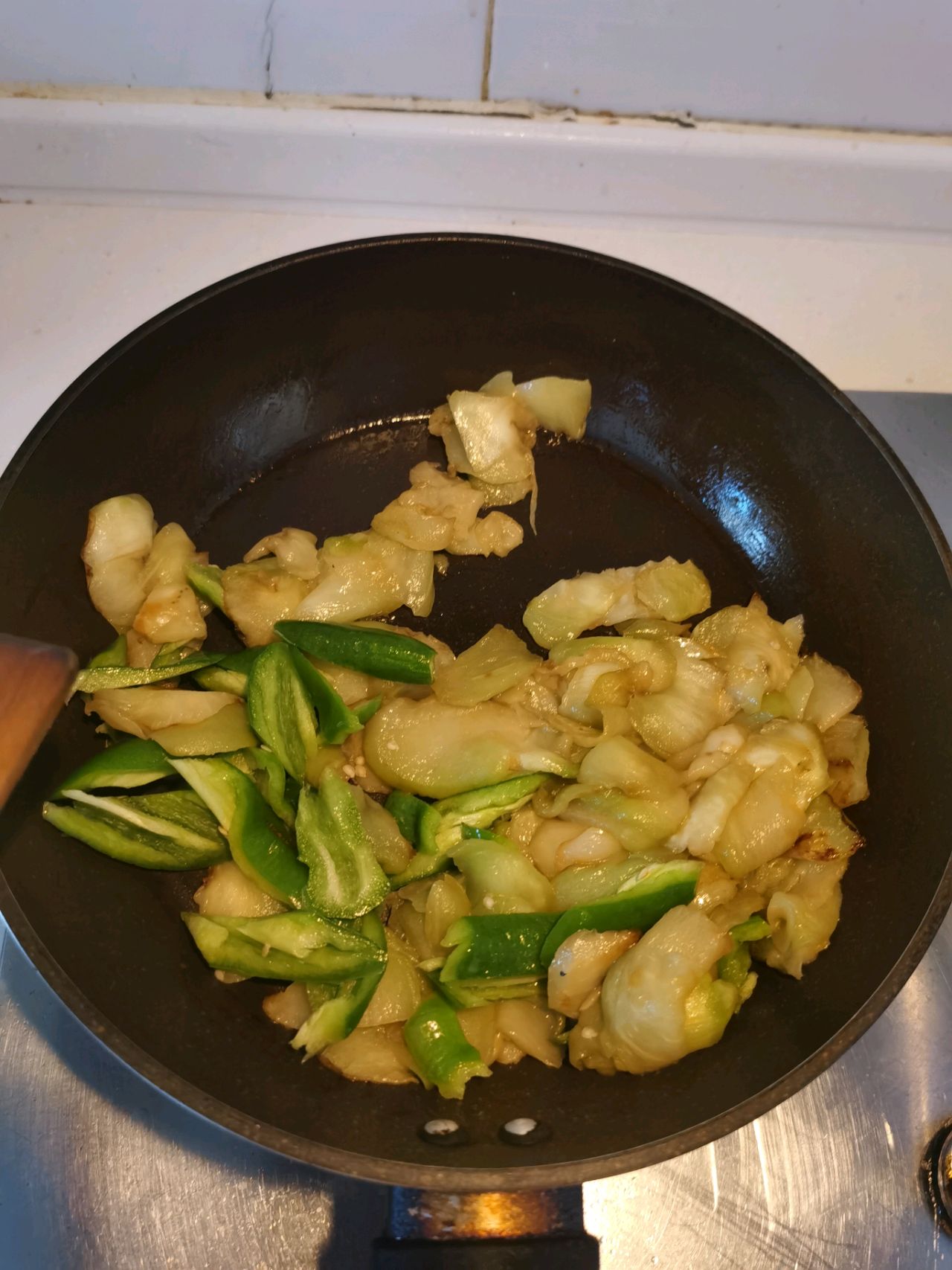 步骤6、加入辣椒继续翻炒