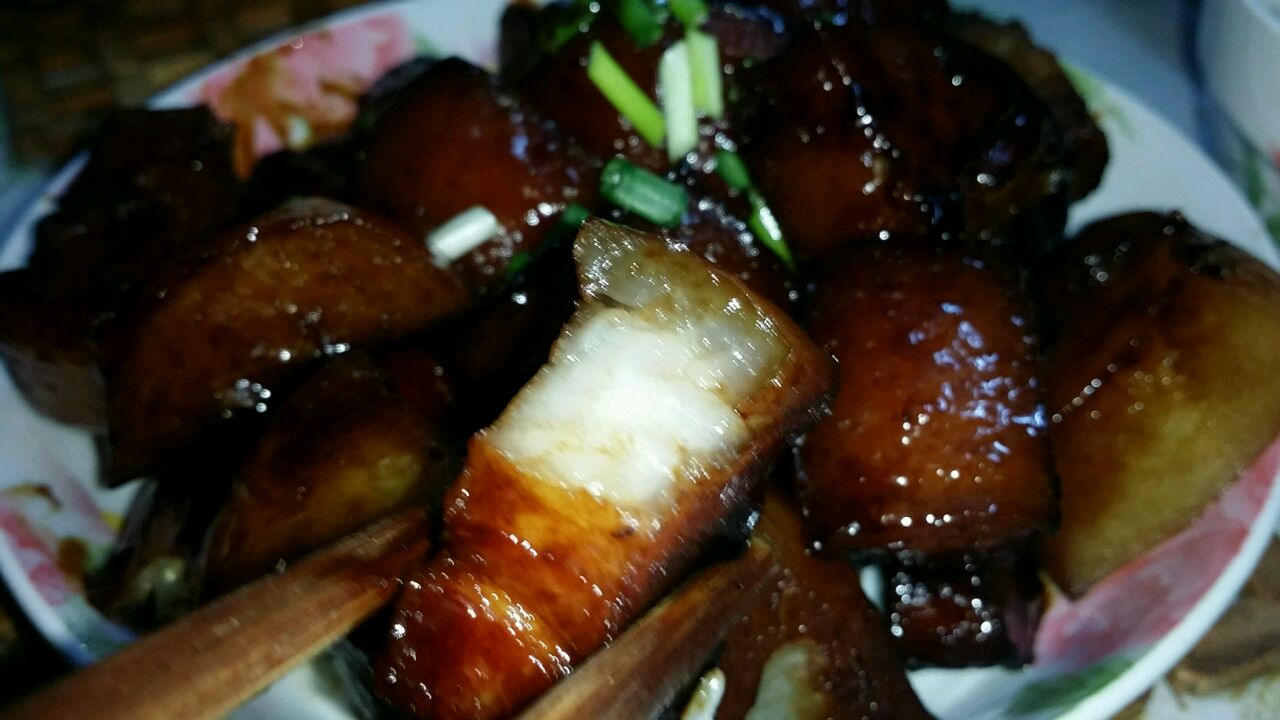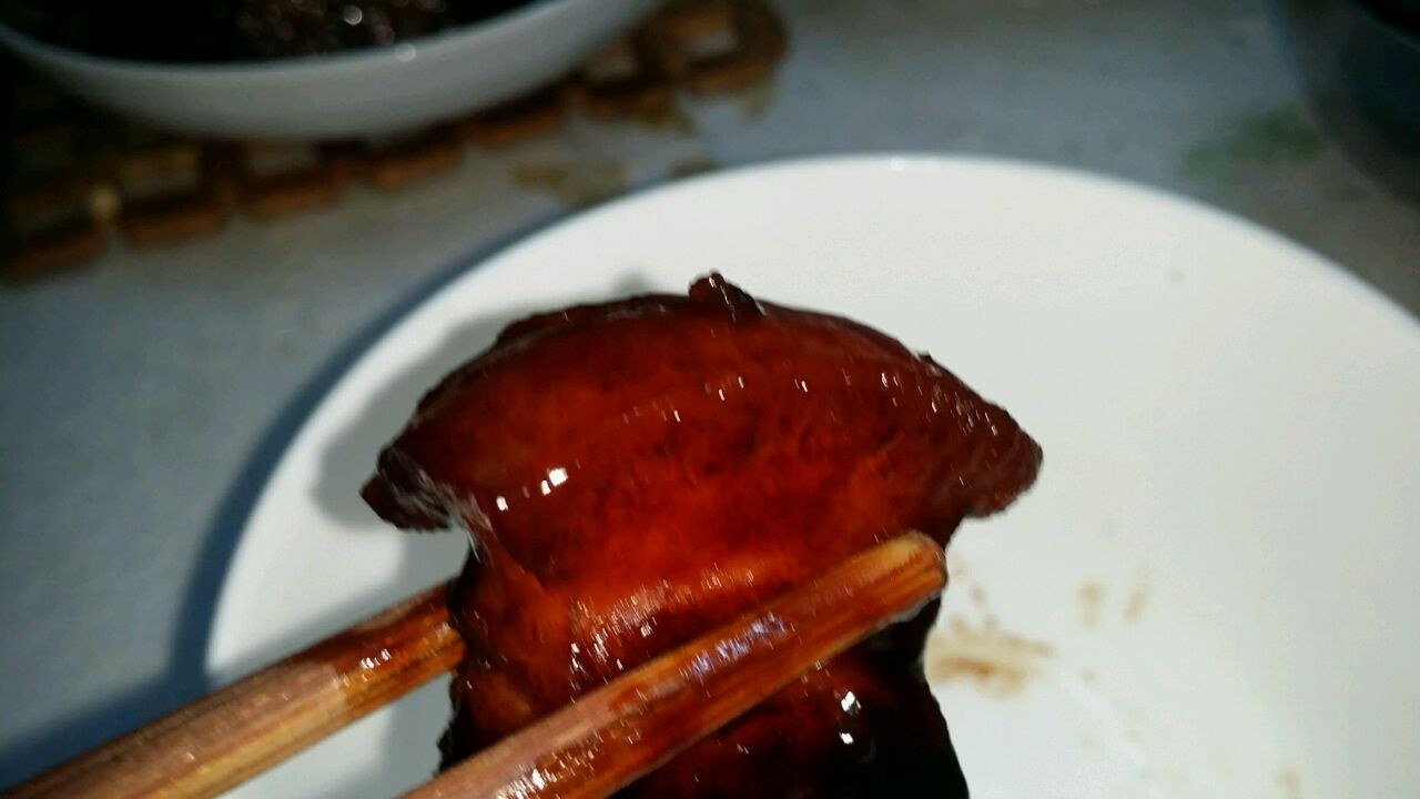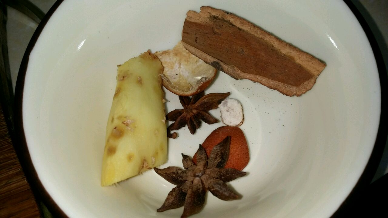 辅料:老抽10g、盐1g、糖5g、料酒10g、葱姜适量、油20g、冰糖10粒、陈皮2块、桂皮1块、味极鲜1勺