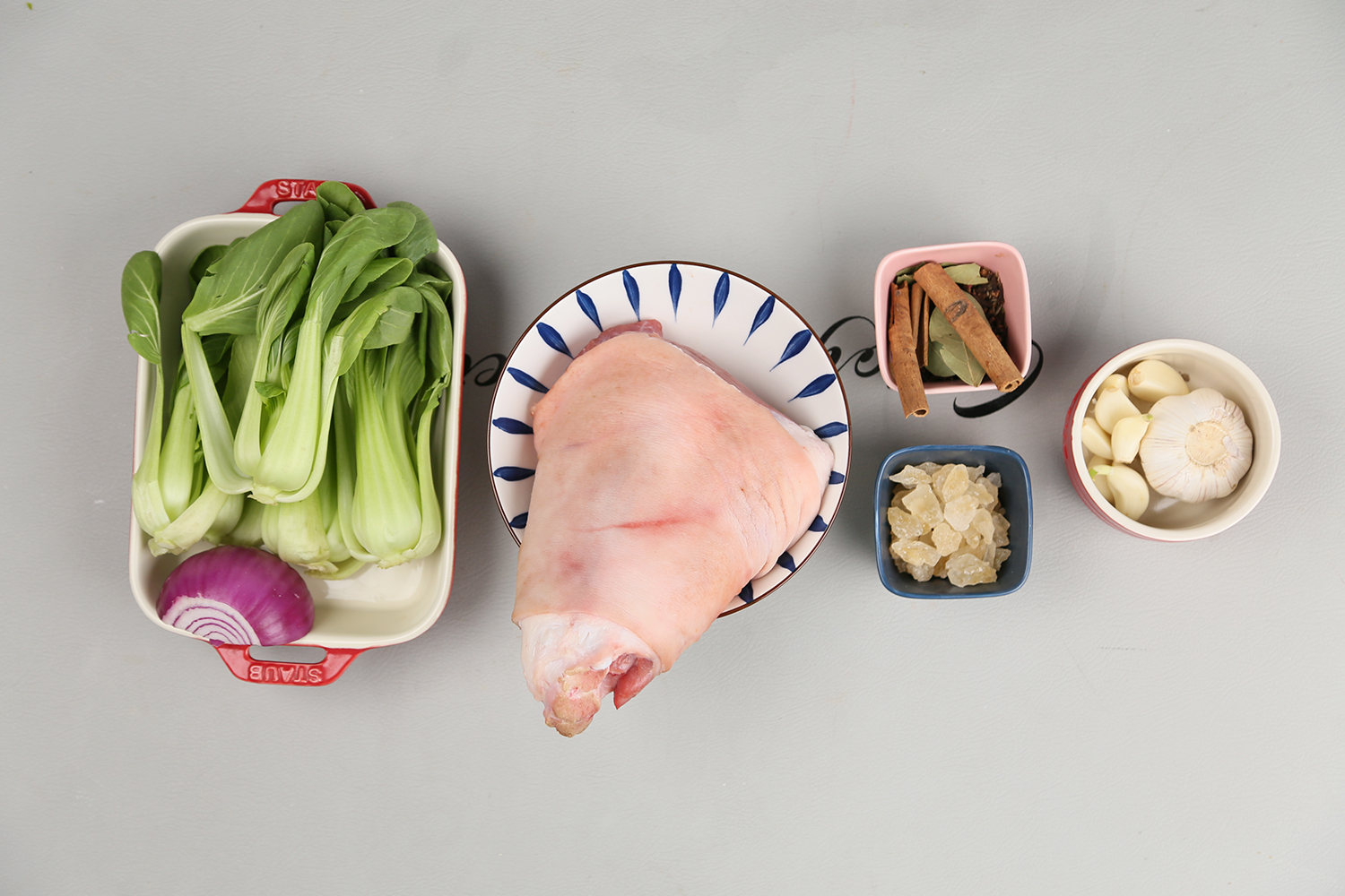 辅料:香叶5-6片、大葱1根、冰糖30克、辣椒酱10克、生抽2勺、老抽1勺、青菜少许、料酒少许、干辣椒5-6根、大蒜1头、姜片4片、食盐少许