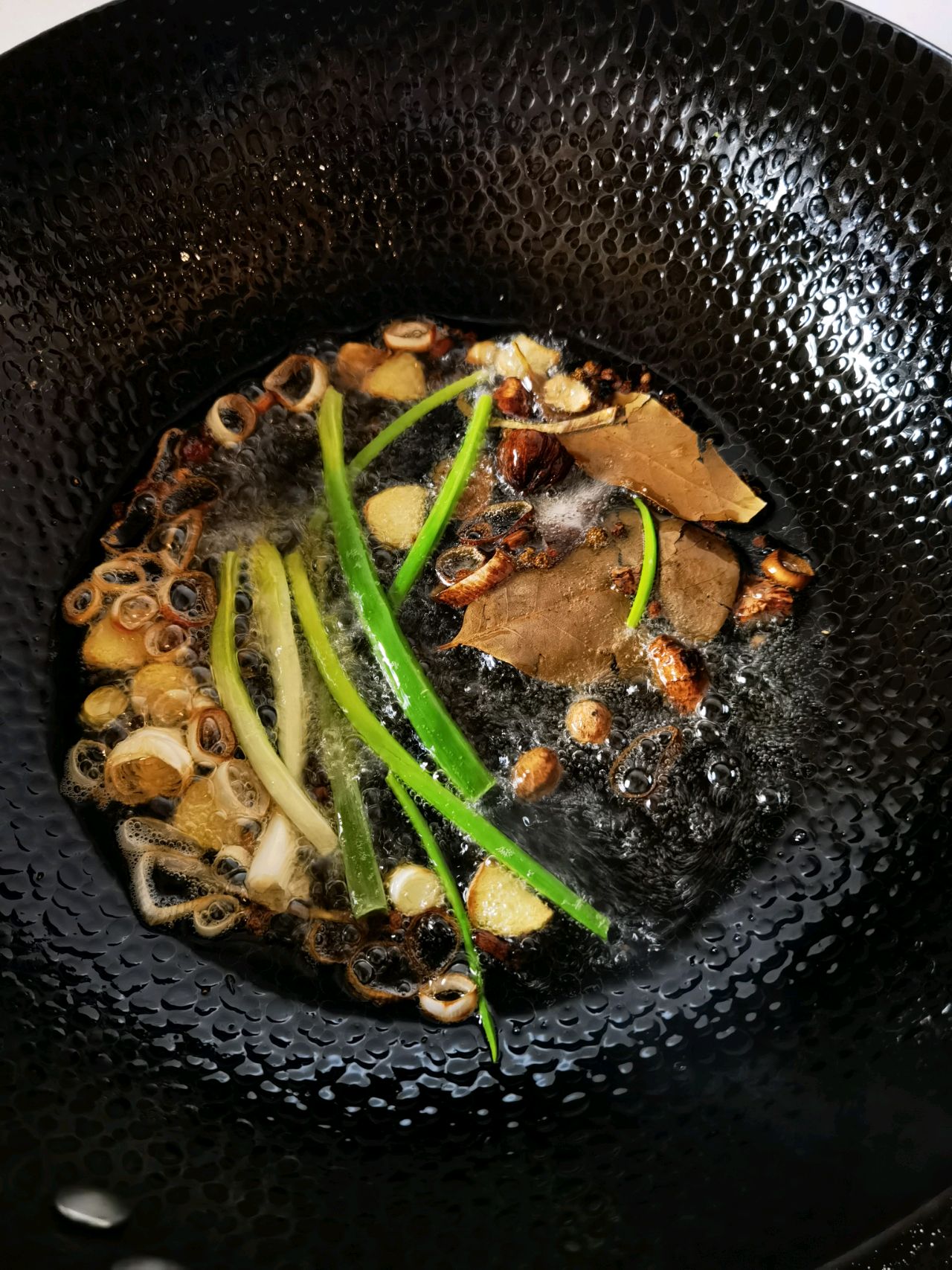 辅料:花生油200克、各种香料适量、白芝麻适量
