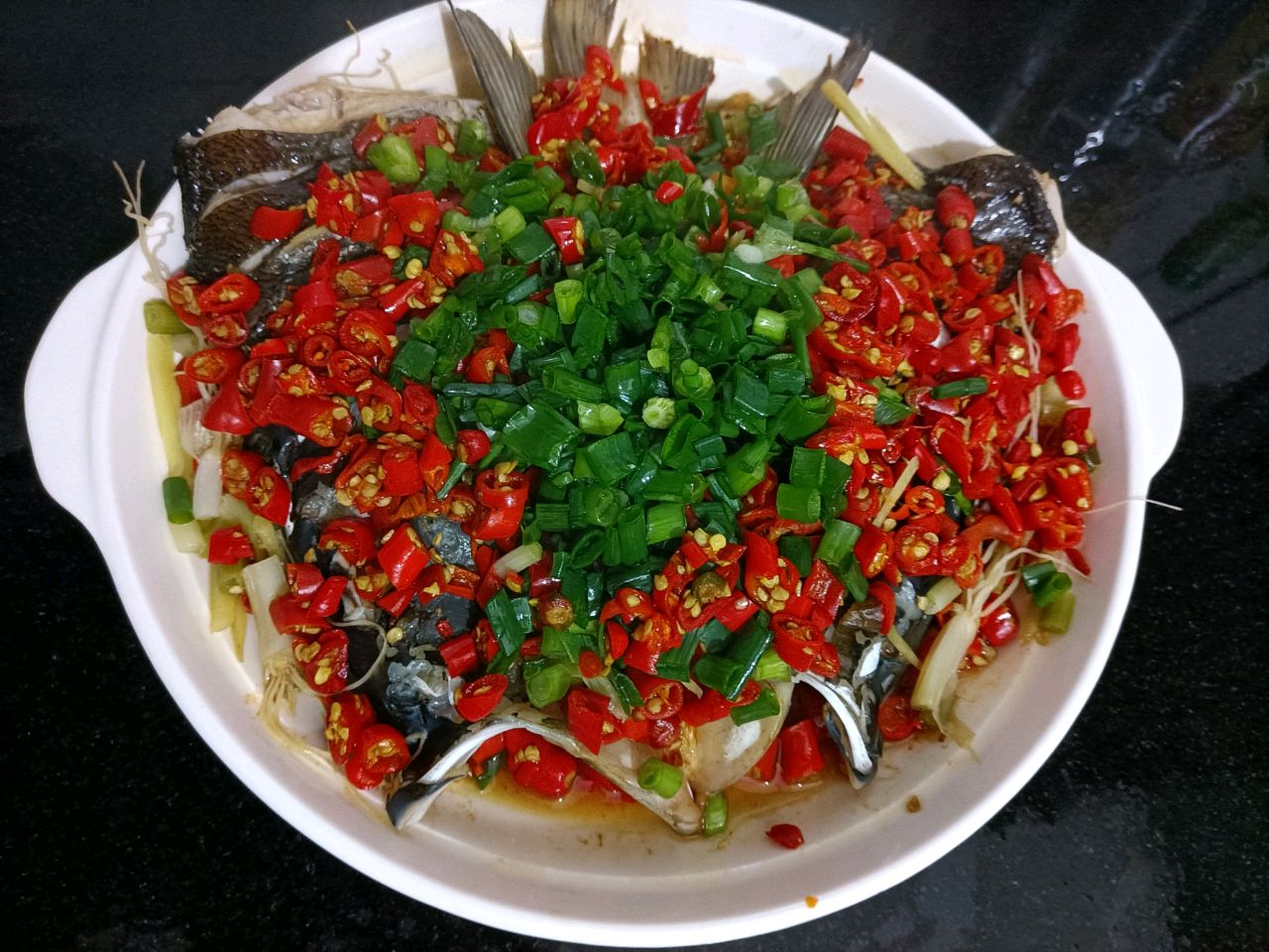 辅料:葱段2根、剁辣椒150克、姜适量、酱油1勺、高度酒两勺