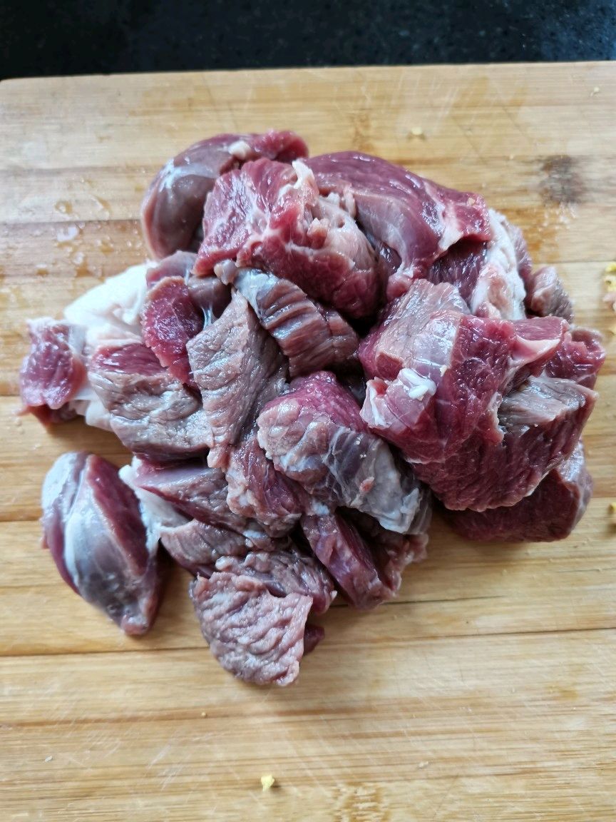步骤2、选用的是羊后腿肉,油脂比较少