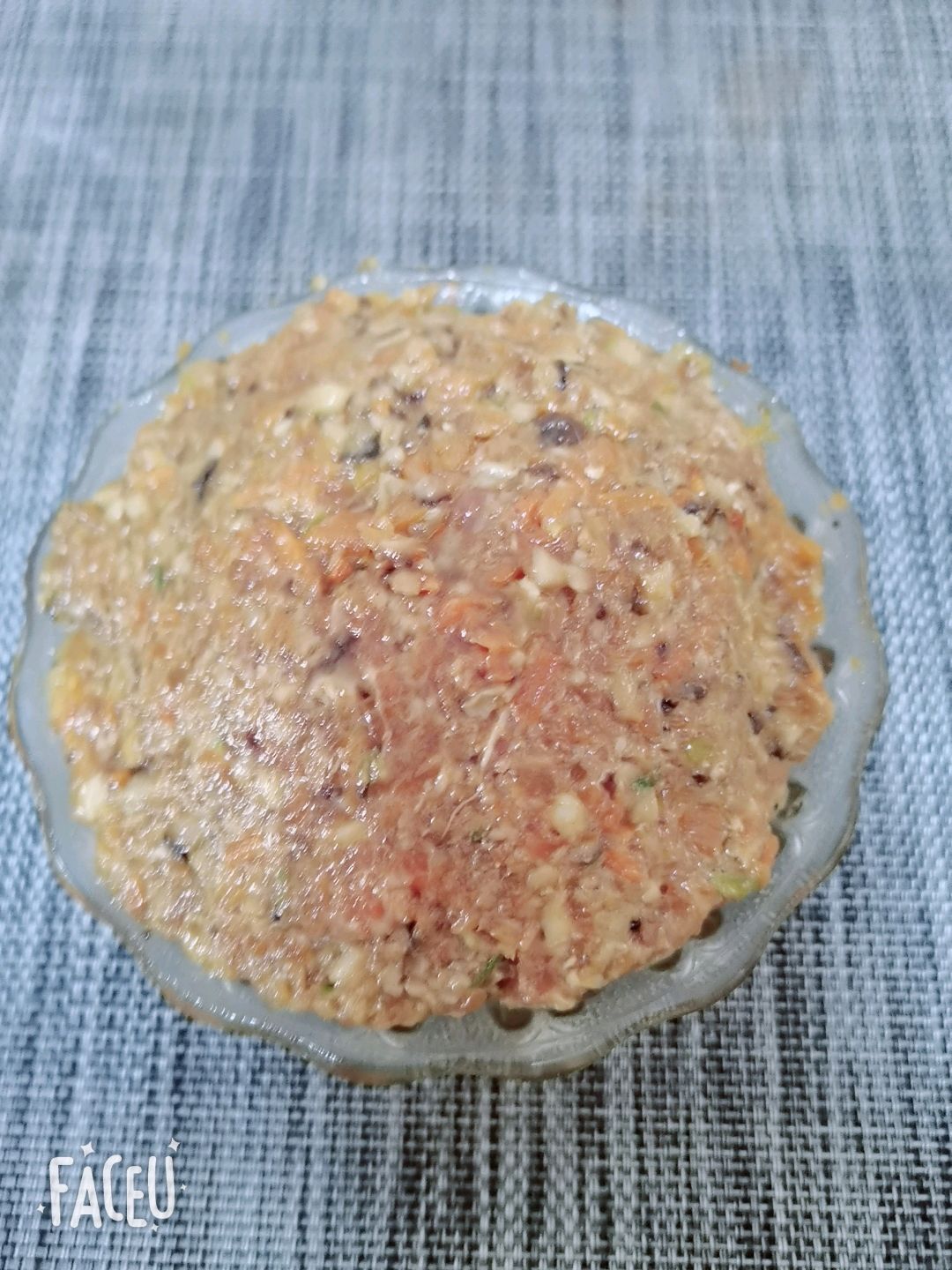 步骤1、取500克面粉,放点盐活成一个稍微硬一点的面团!让面醒一下我们去调馅!