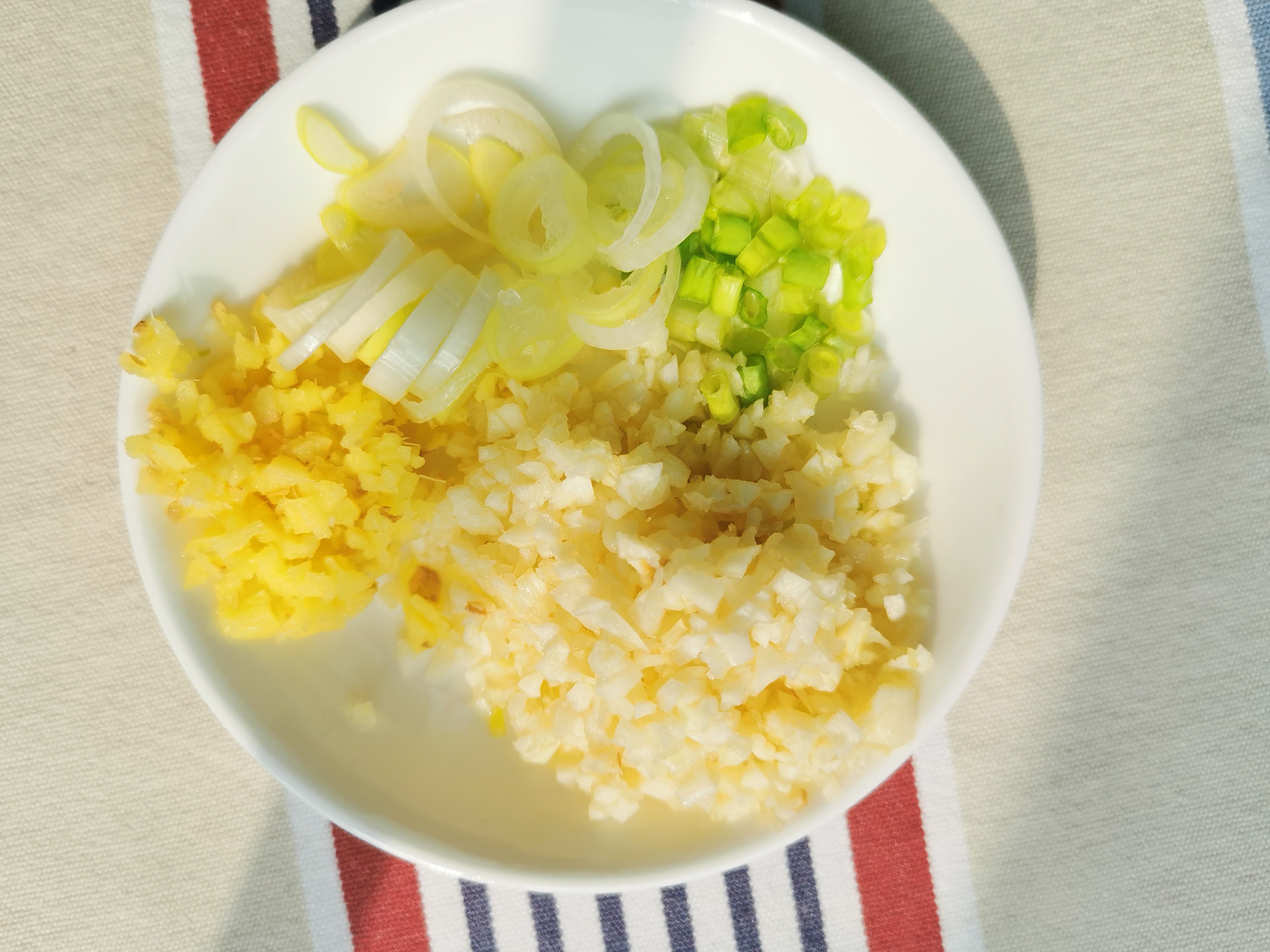 步骤3、热油爆香葱姜末。