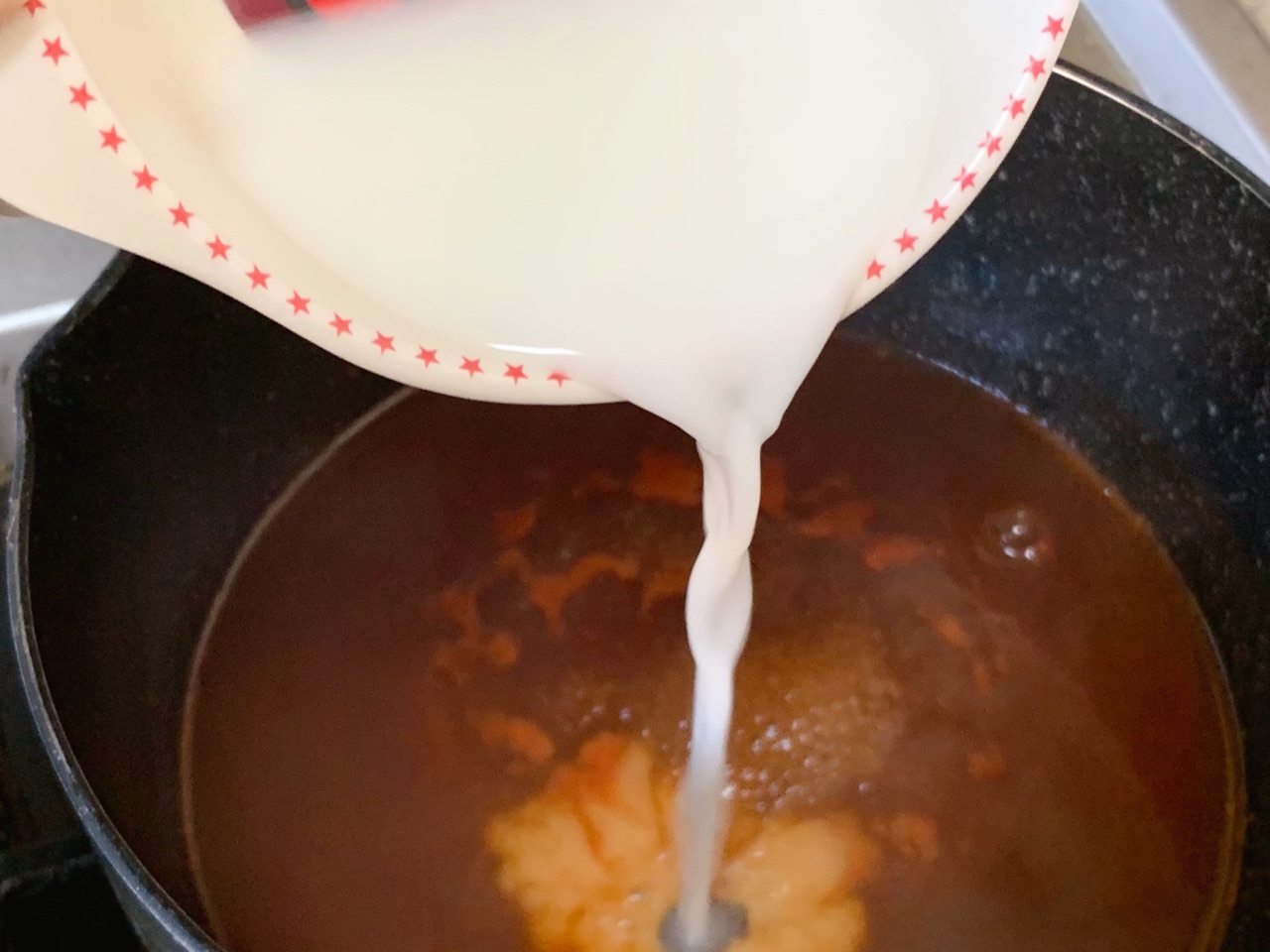 步骤4、小石窑糖醋汁倒入锅中,加半碗水煮开