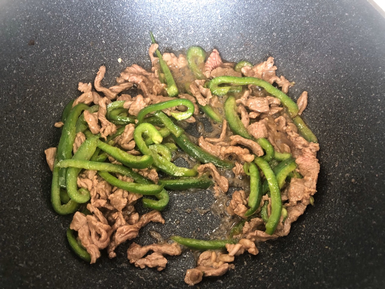 步骤9、再倒入牛肉,翻炒一会儿出锅~