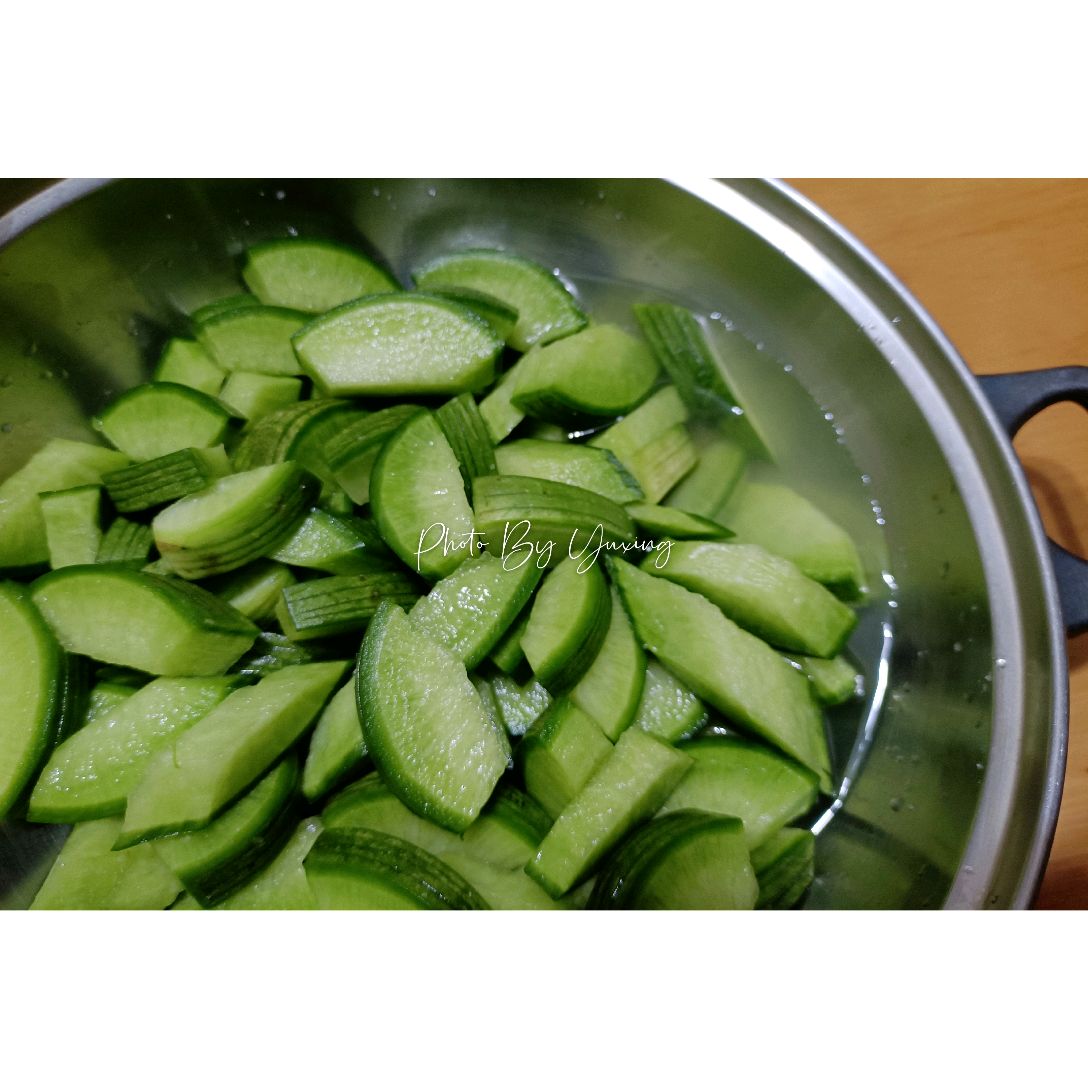 步骤2、将萝卜洗净后,切成斜片状,约1.5公分的厚片,也可以根据自己喜欢的形状来切。然后,加入40克的食盐抓匀,加盖腌制1小时以上