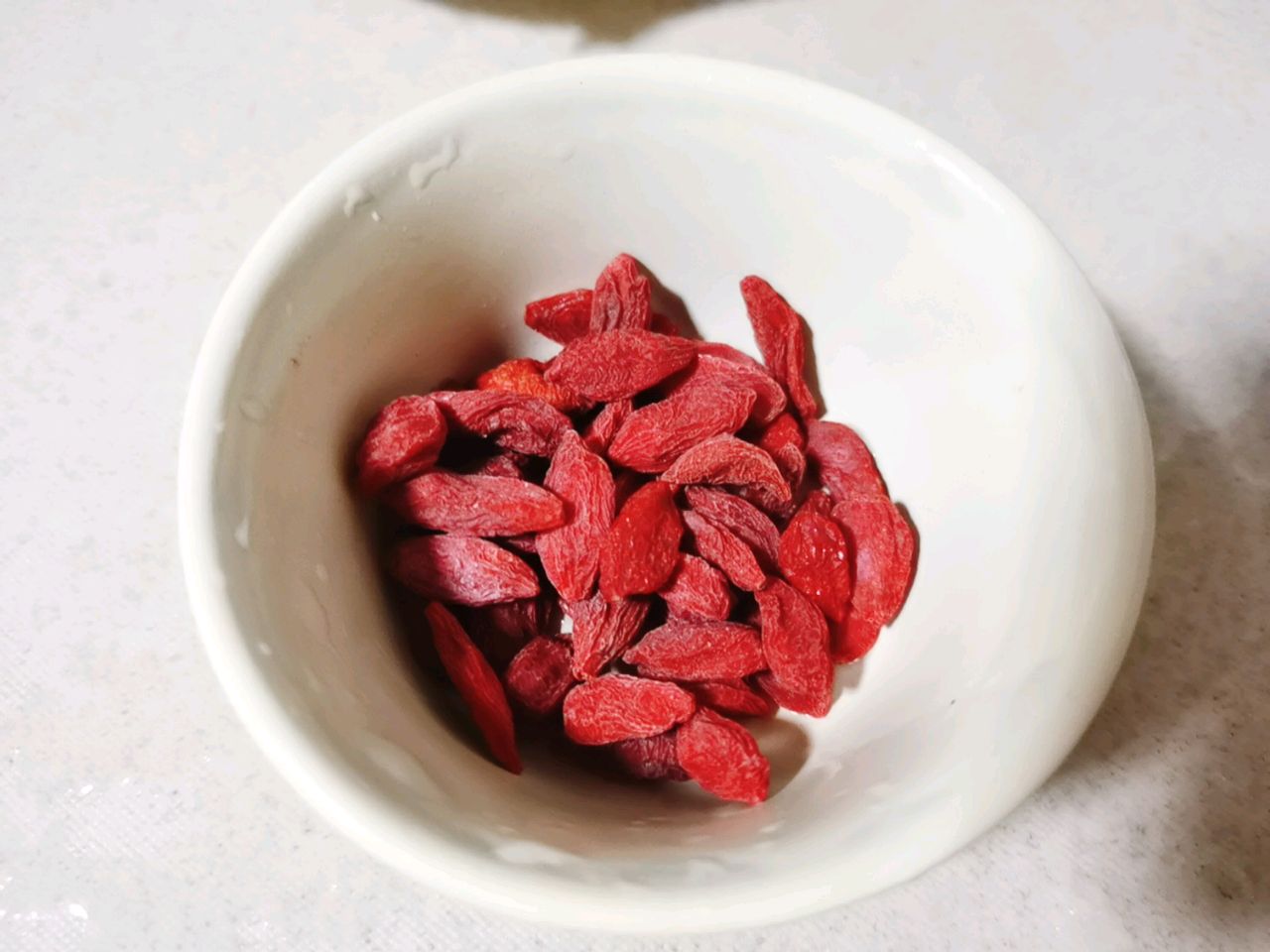 步骤8、加入枸杞和少许冰糖再煮2分钟即可出锅