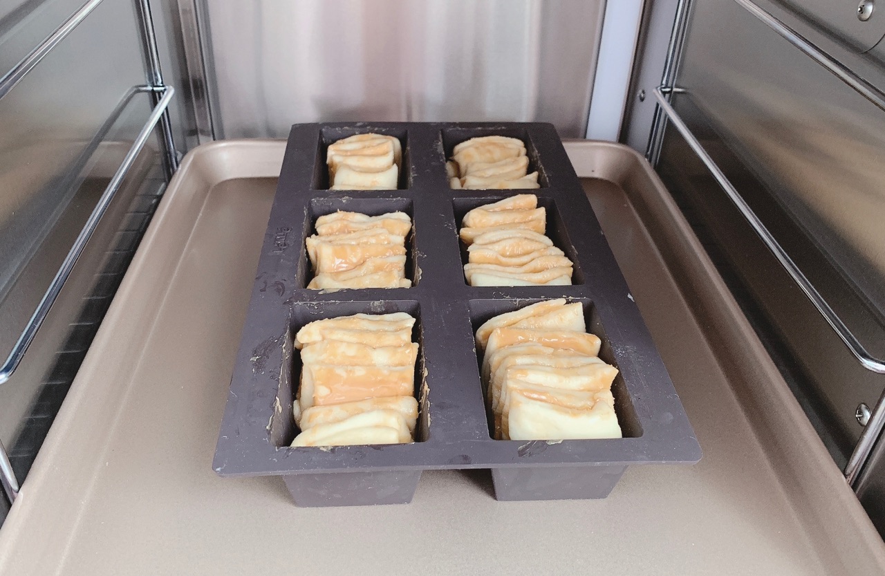 步骤14、烘烤温度:180度,放入中下层,上下火烤30-35分钟至表面呈金黄色,脱模放凉,密封保存。
