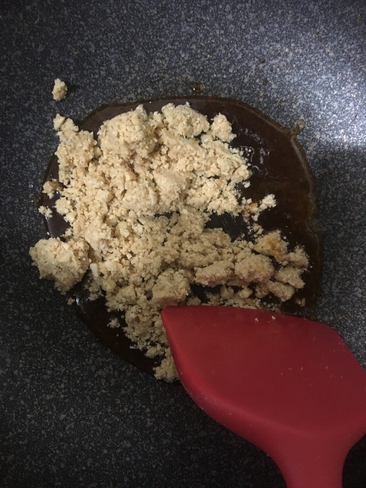步骤4、转小火,用硅胶铲翻拌至成团即可。