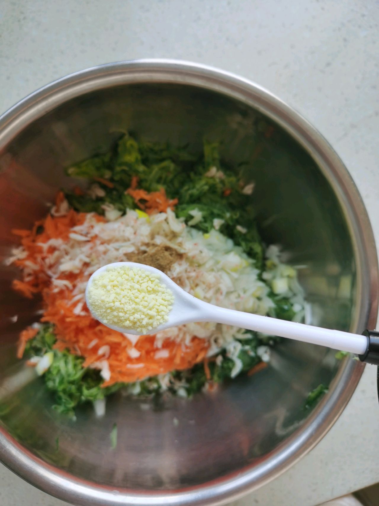 步骤22、再加一点食用油,顺着一个方向搅拌,馅料就做好了