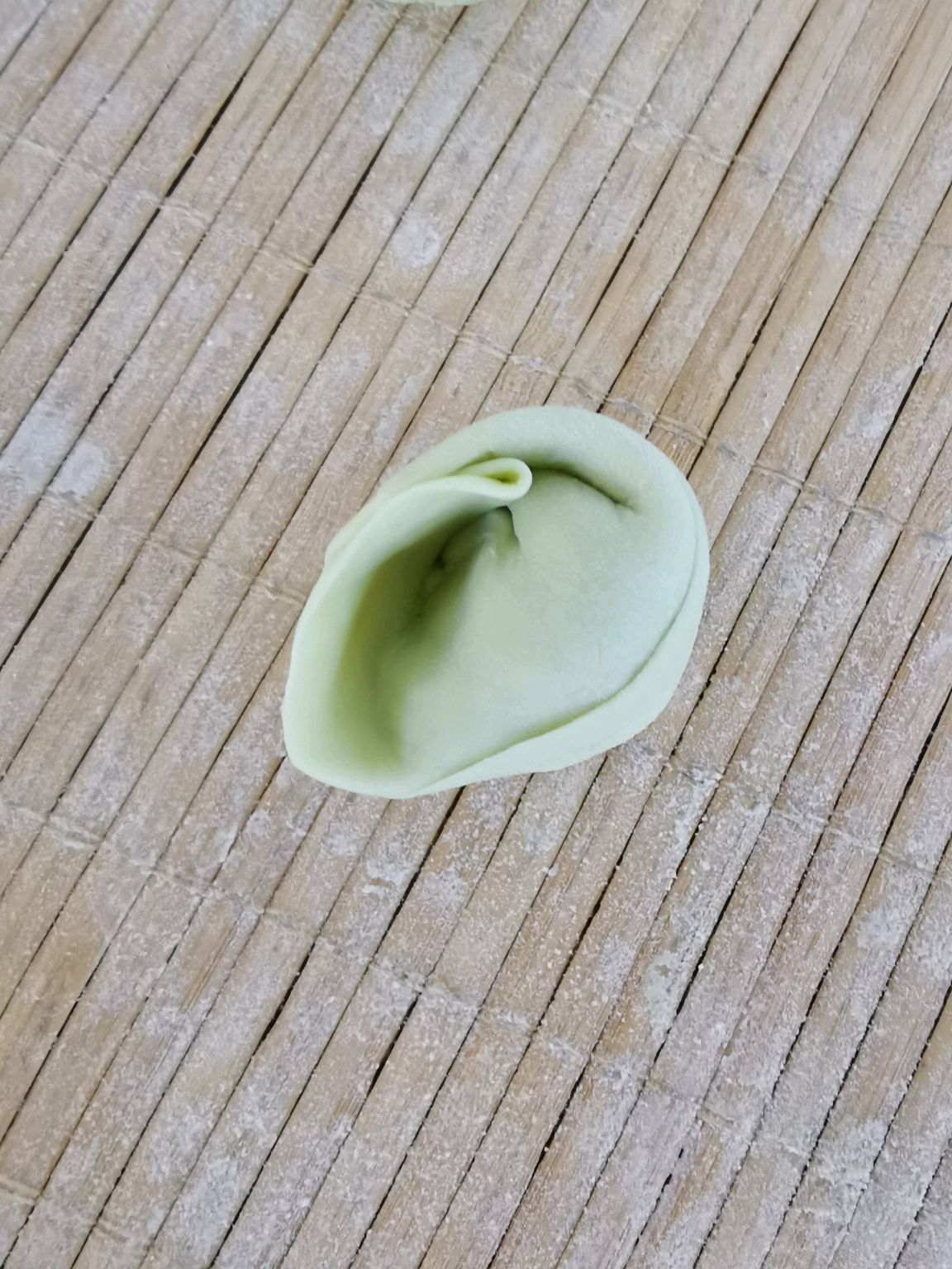 步骤30、在把两边捏在一起一个馄饨就包好了