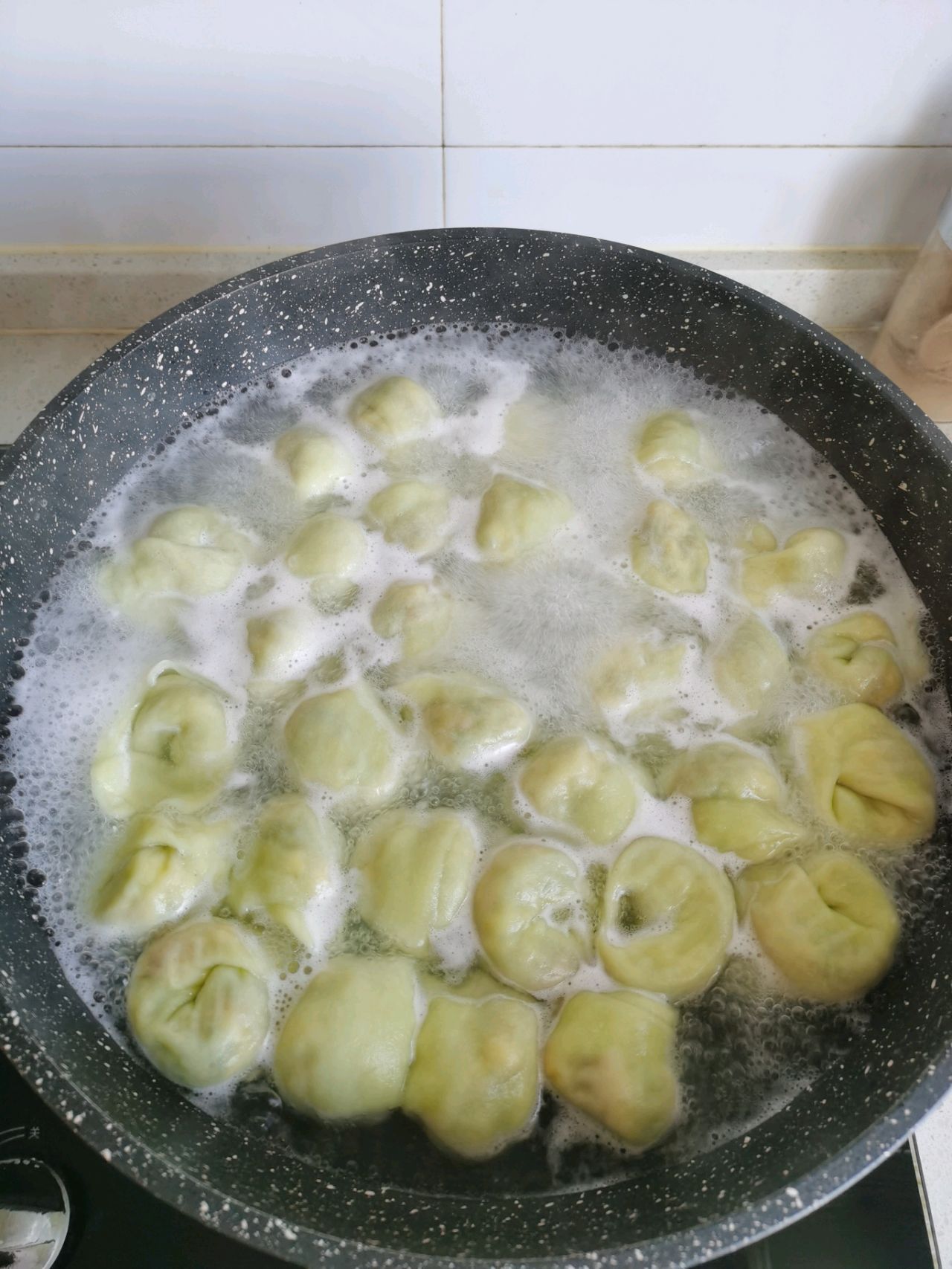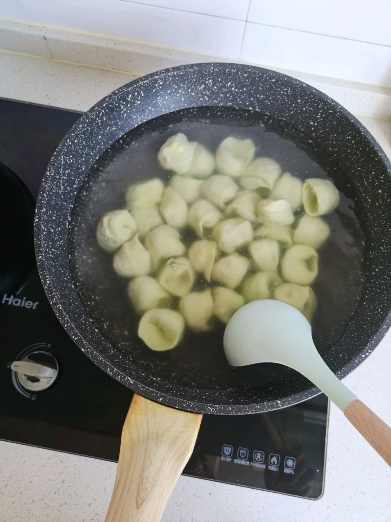 步骤33、水开下馄饨,用勺子搅一搅,以免粘锅