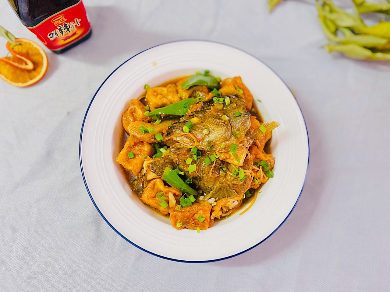 步骤1、黄金鲈鱼煲,酱香入味,鱼肉与豆腐鲜嫩微辣,口感味道都不错,年夜饭真的可以备上一盘~